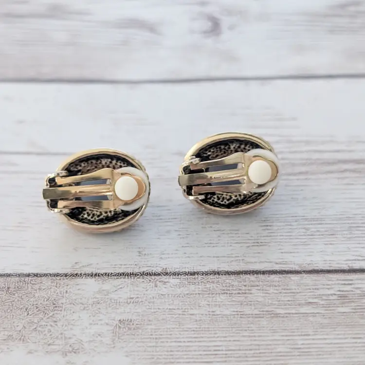 Preowned vintage earrings, sold as shown - I am unsure of material type(s) because of this. Pictures show different angles for you to review - while I attempt to note any defects, some tarnish/signs of wear may be visible that are not otherwise stated.
