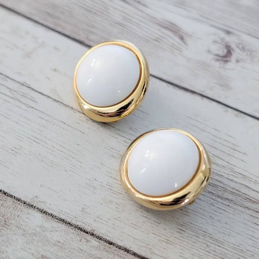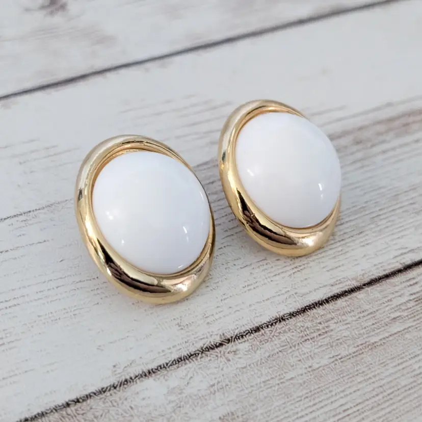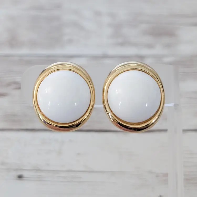 Vintage Clip On Earrings Statement Large White with Gold Tone - Halo Imperfections