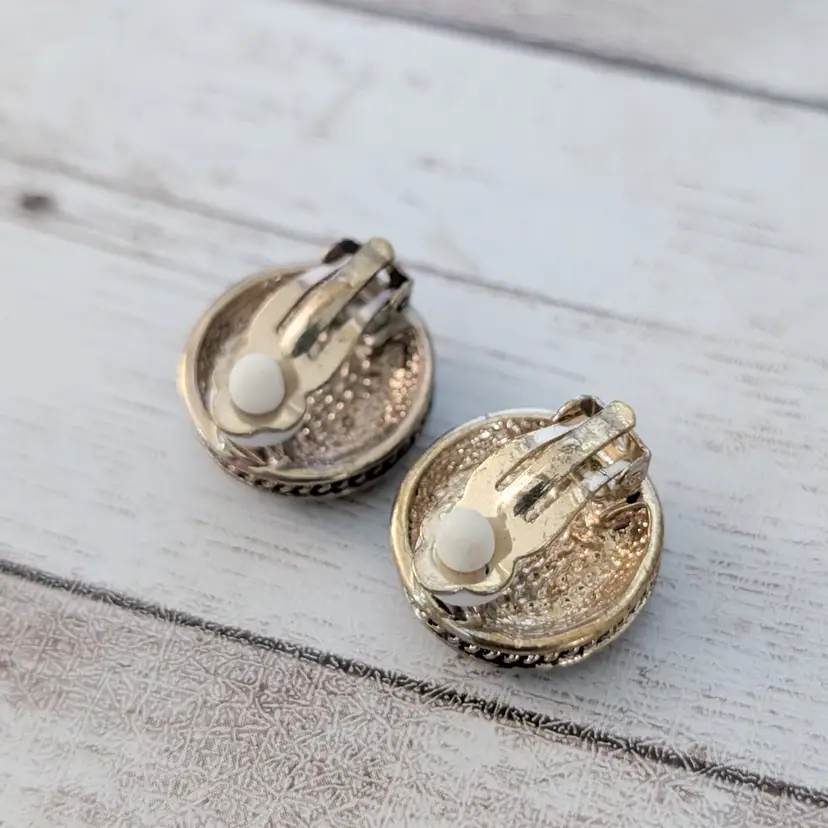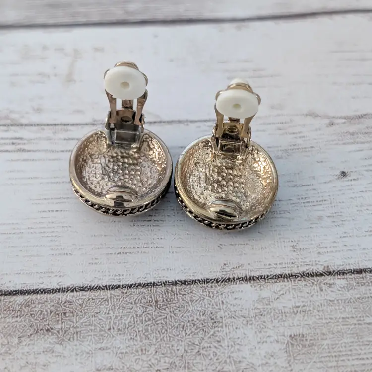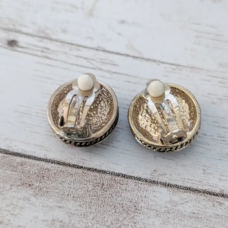 Preowned vintage earrings, sold as shown - I am unsure of material type(s) because of this. Pictures show different angles for you to review - while I attempt to note any defects, some tarnish/signs of wear may be visible that are not otherwise stated.