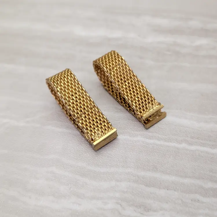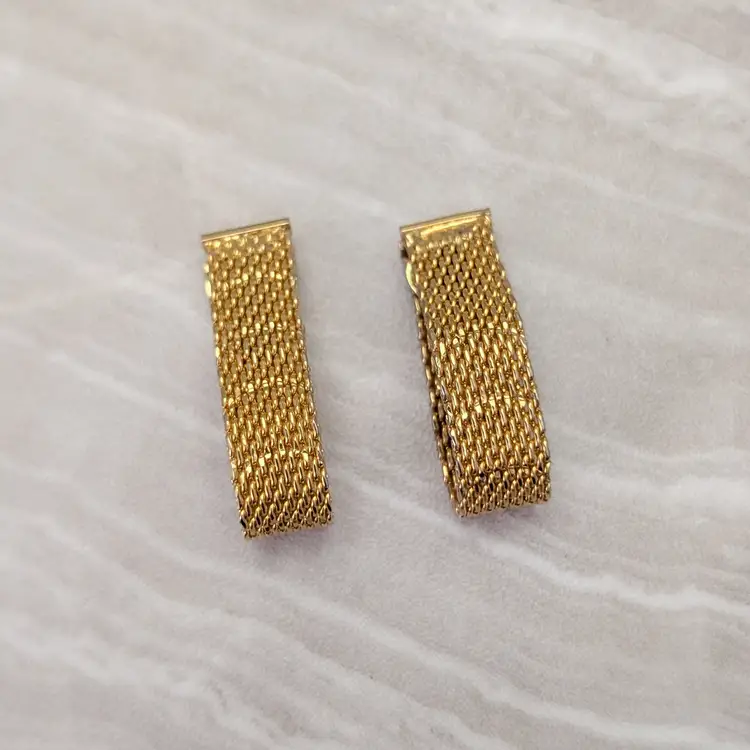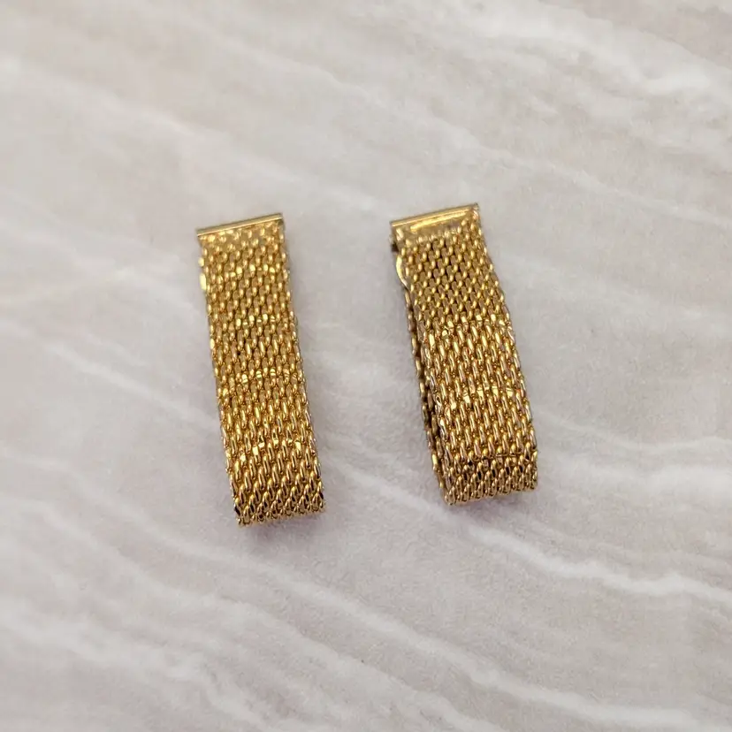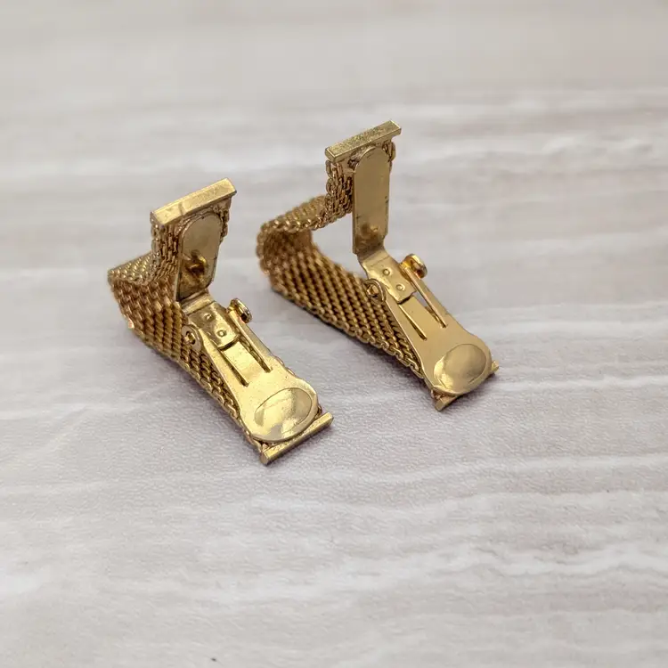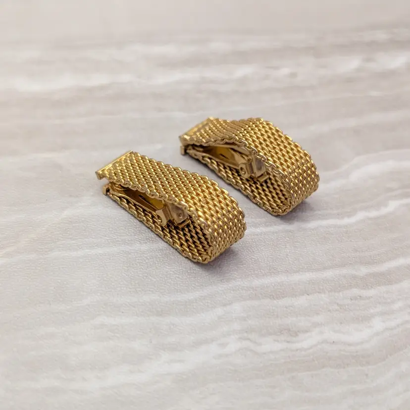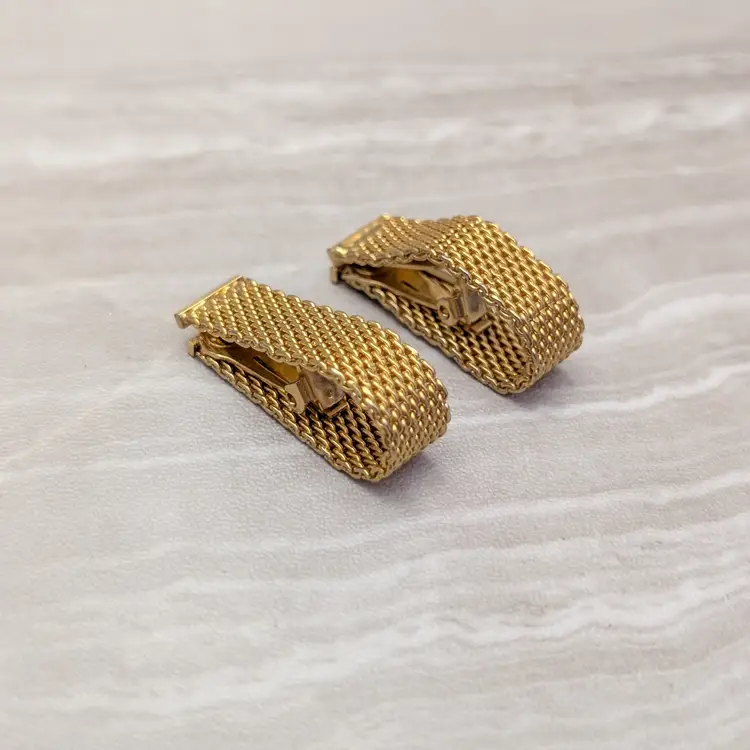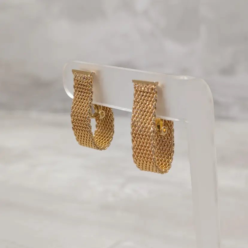 Vintage Clip On Earrings Stylish Gold Tone Mesh Hoop Like Large Statement
