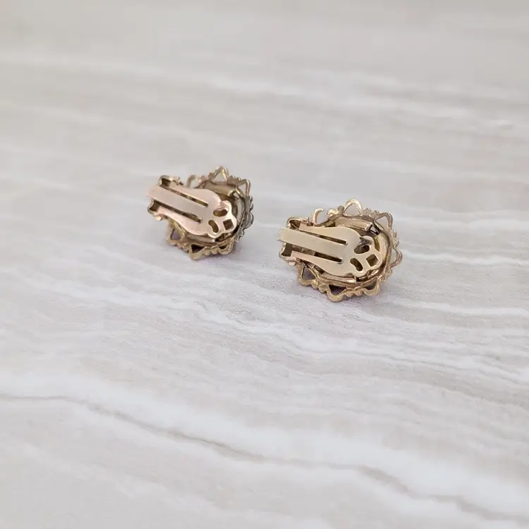 Preowned vintage earrings, sold as shown - I am unsure of material type(s) because of this. Pictures show different angles for you to review - while I attempt to note any defects, some tarnish/signs of wear may be visible that are not otherwise stated.