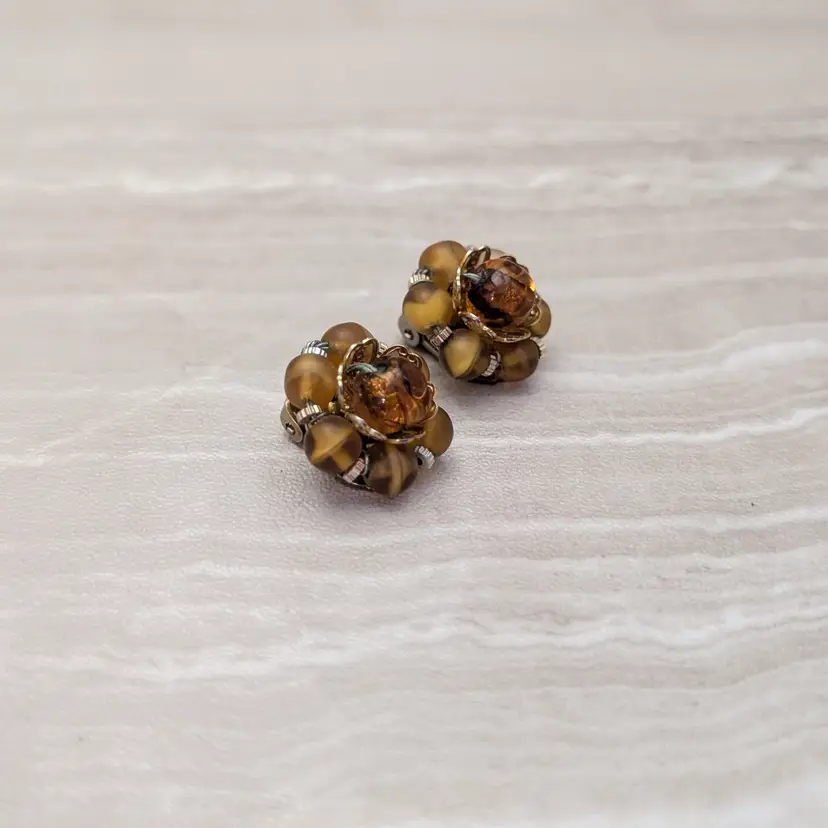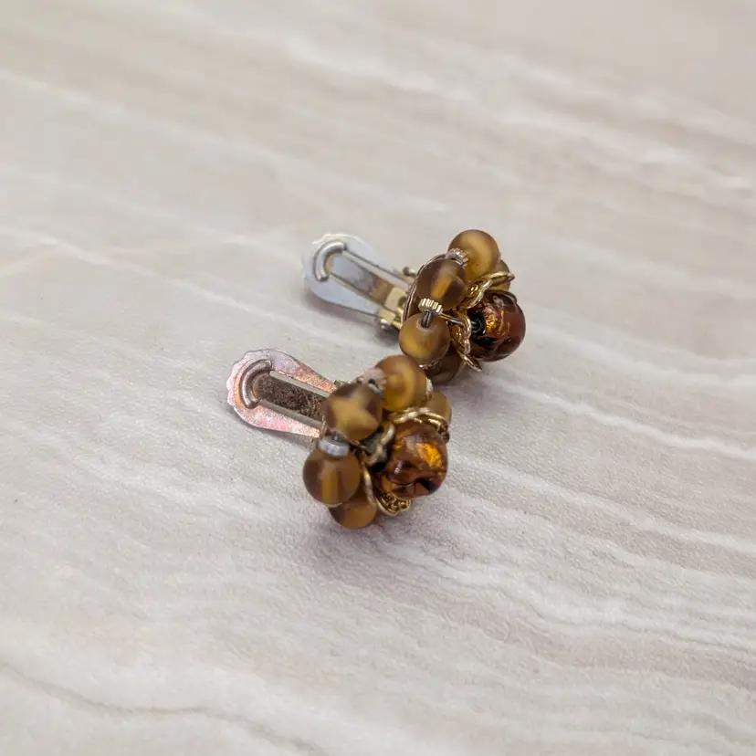 Vintage Clip On Earrings Unusual Stunning 0.75" 3D Brown Cluster Stylish