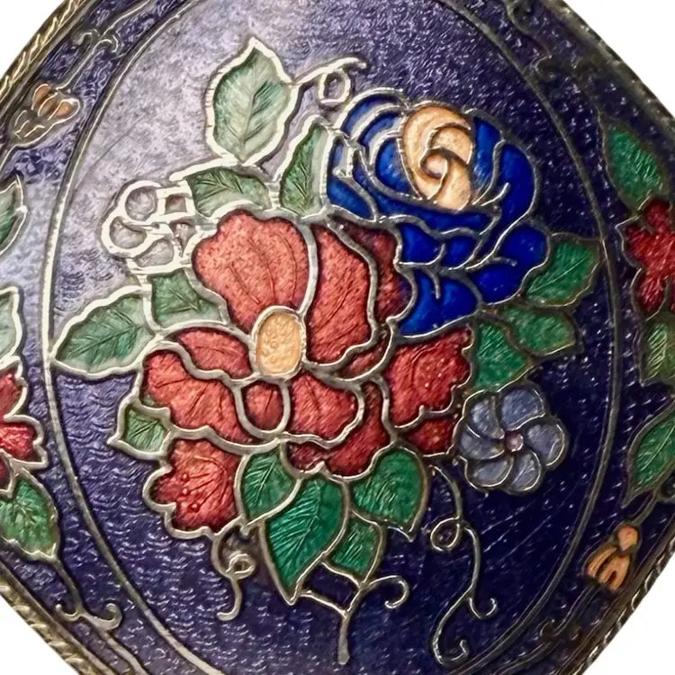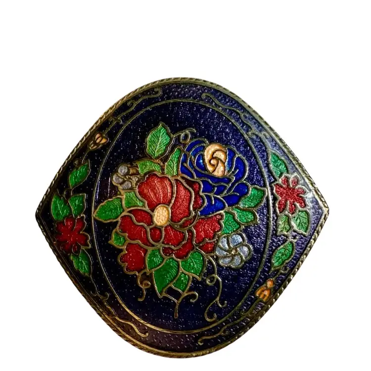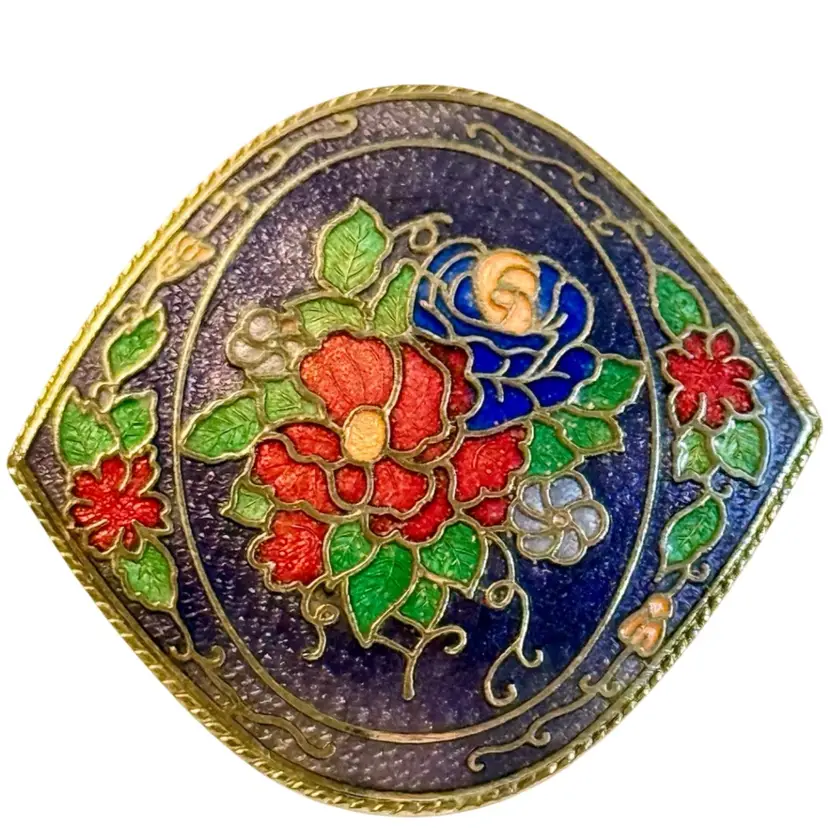 Cloisonné Rose Floral Oval Brooch Pin. In great vintage condition. Light fading in color. No other condition issues noted. Measurements: Approximately 2” x 1.75”. Please see pictures for condition and measurements as they are a part of the description. NJ-3 Thank you for looking!