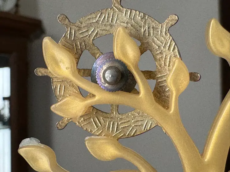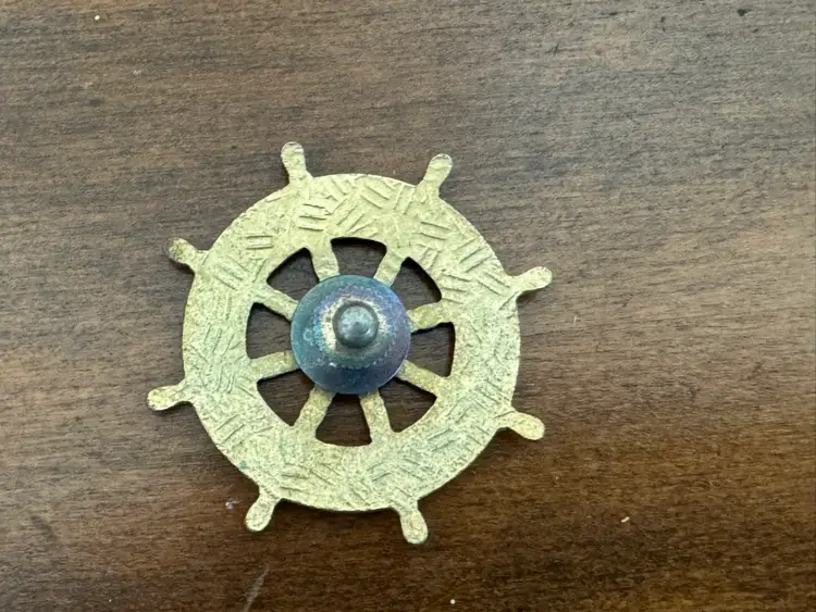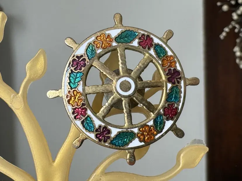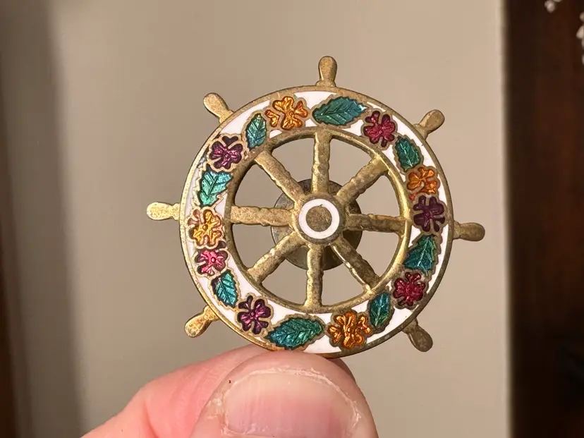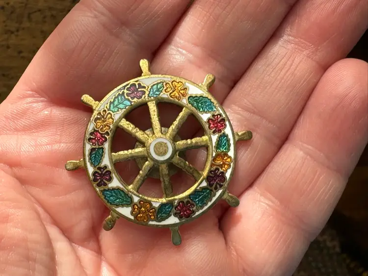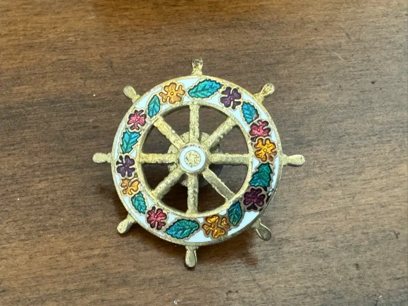Vintage cloisonné ships wheel tack pin brooch