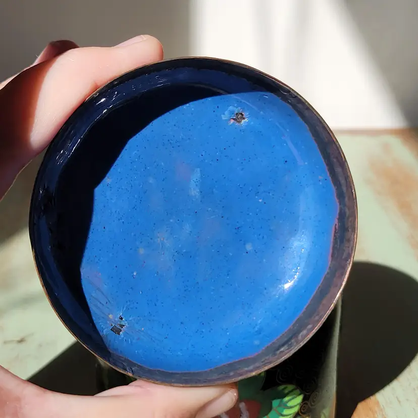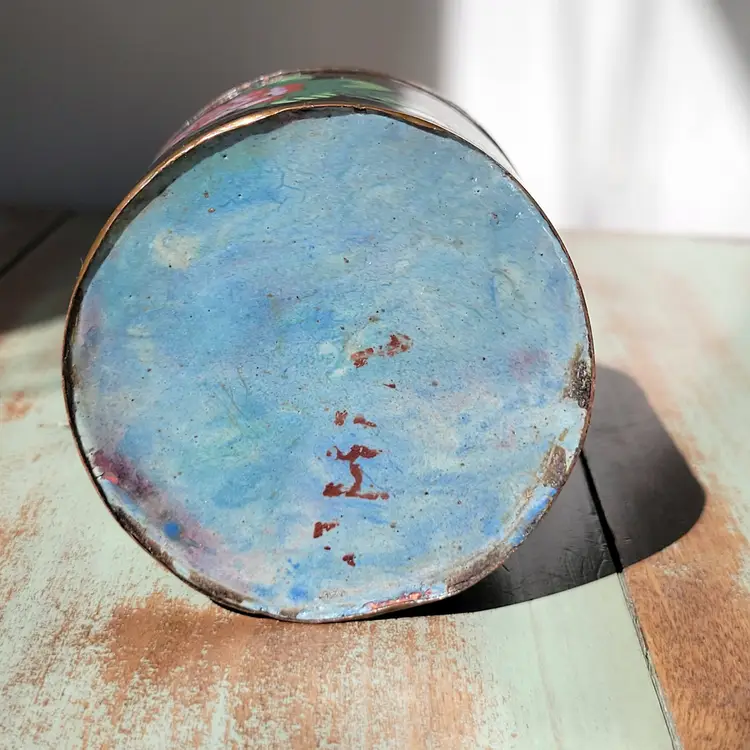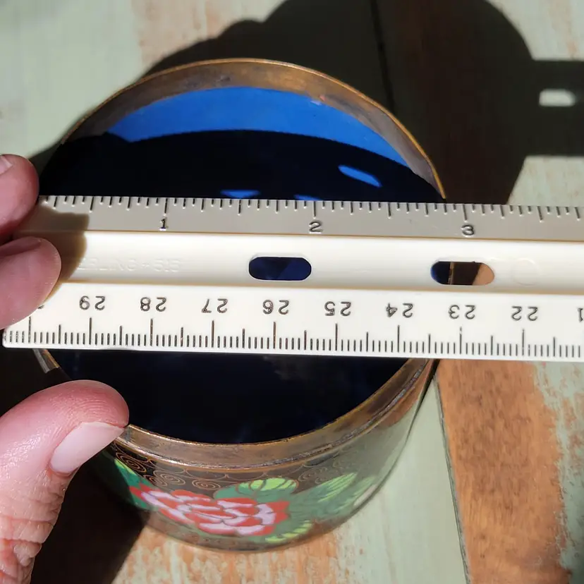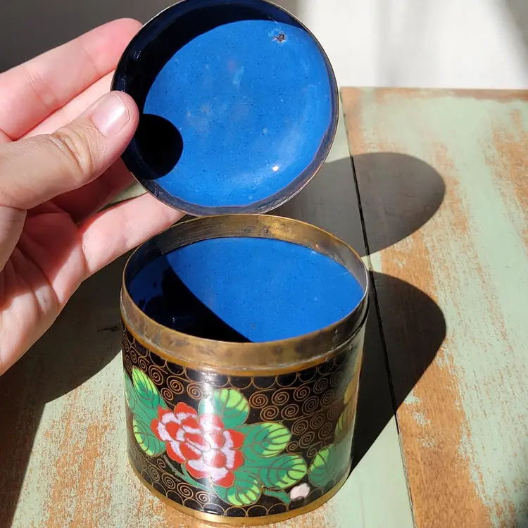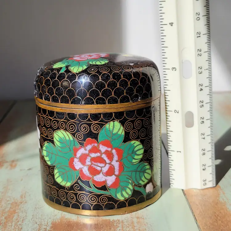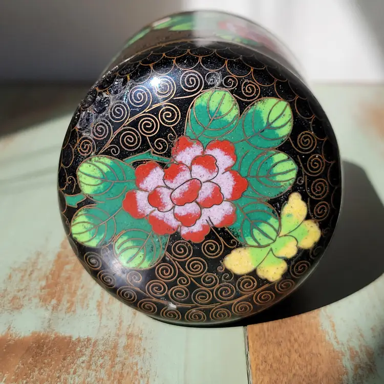 Lovely Vintage Cloisonne Tea Jar Brass Asian Chinese Lidded Floral Container
