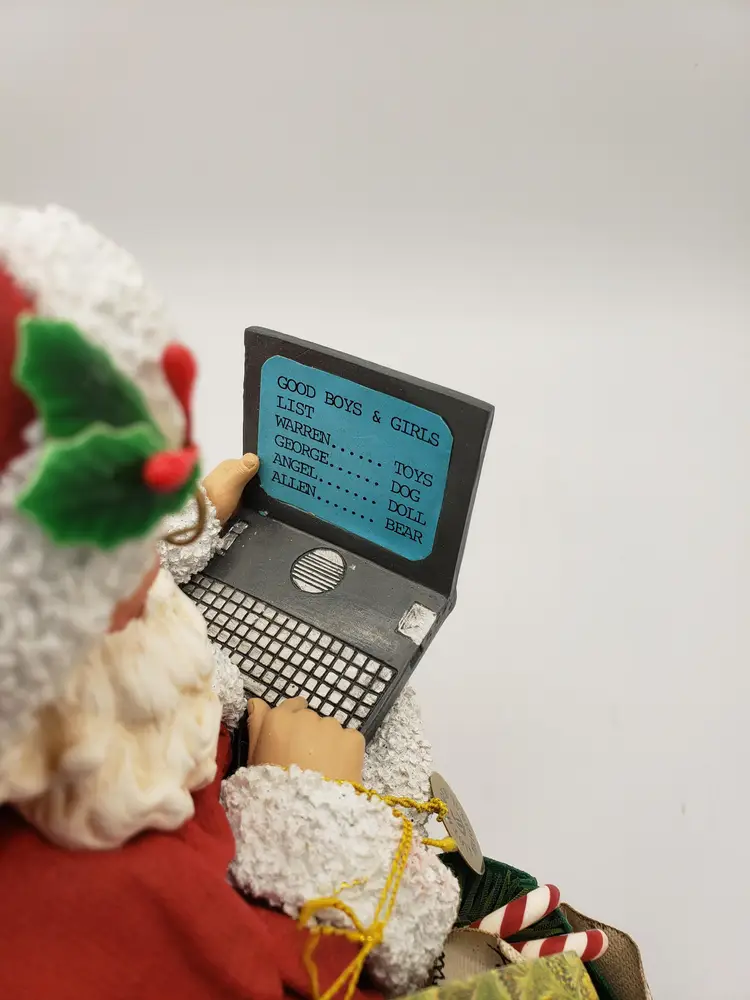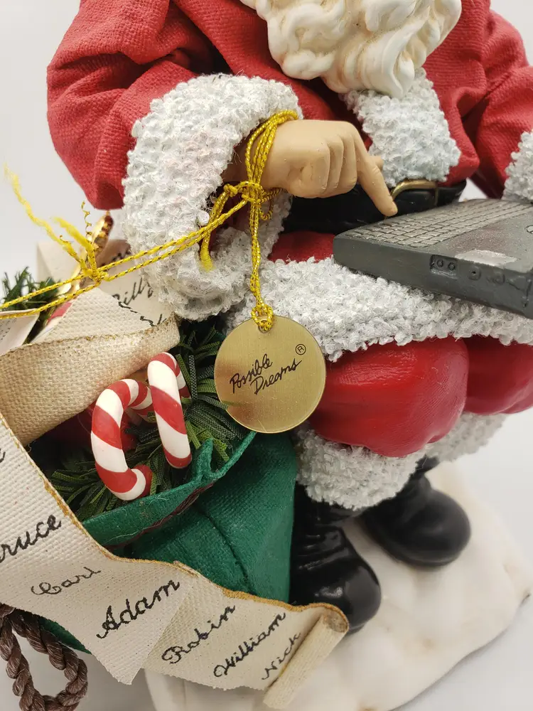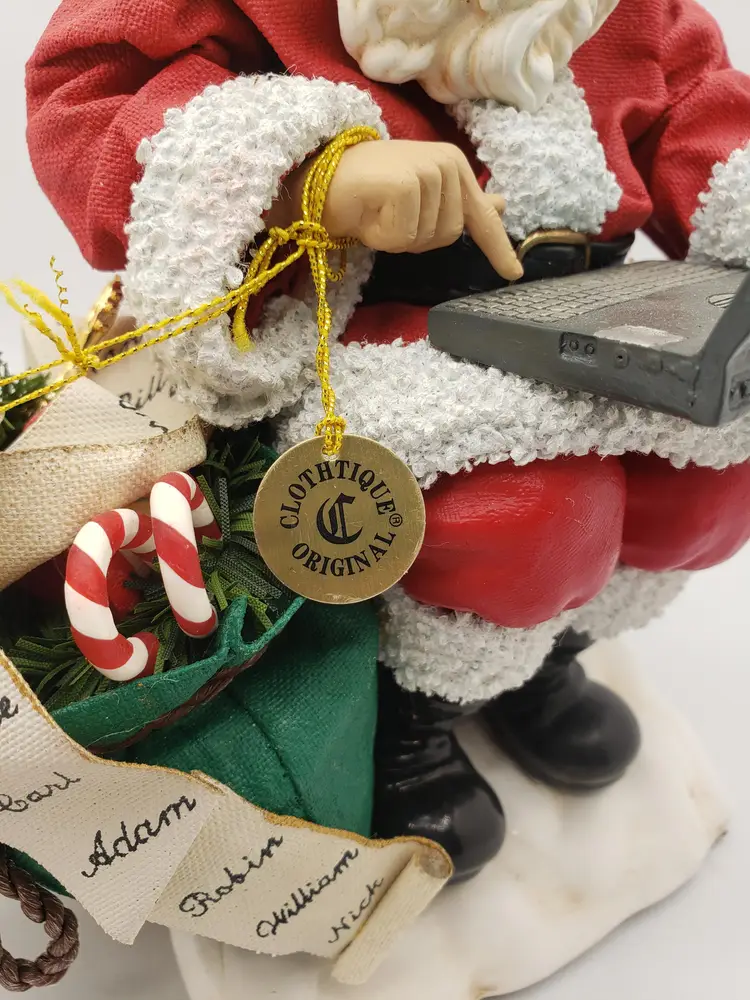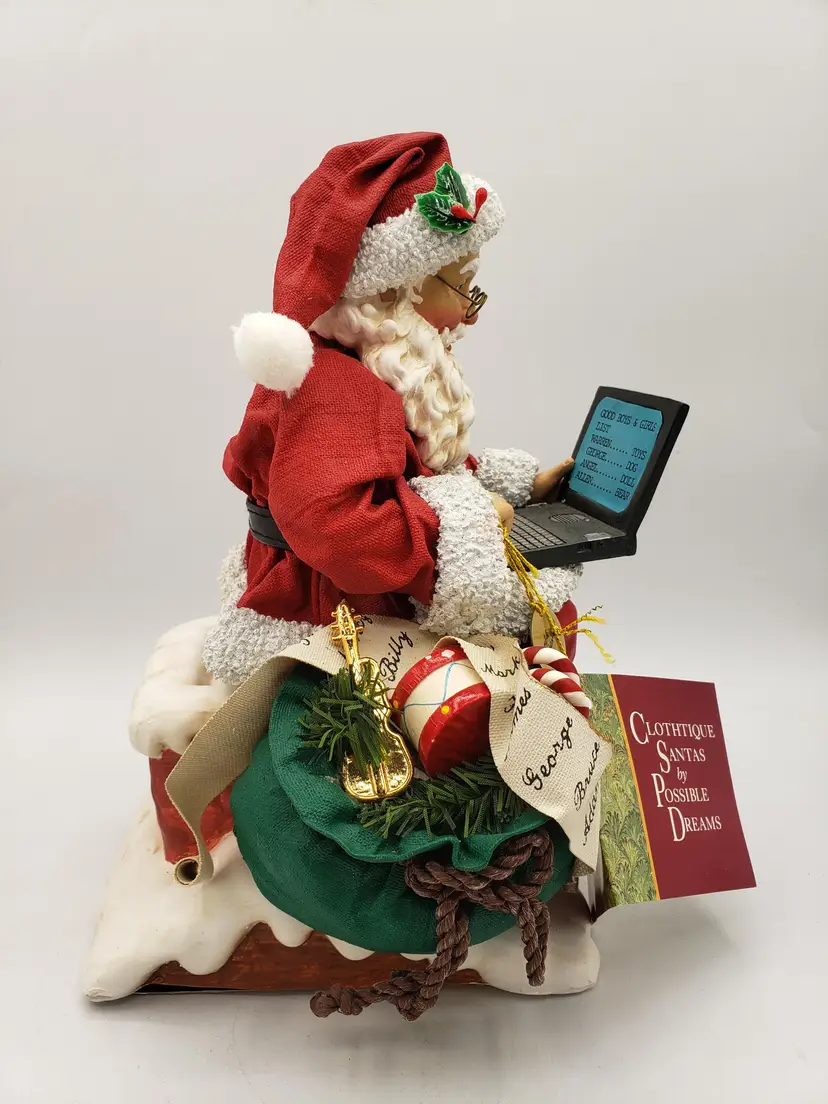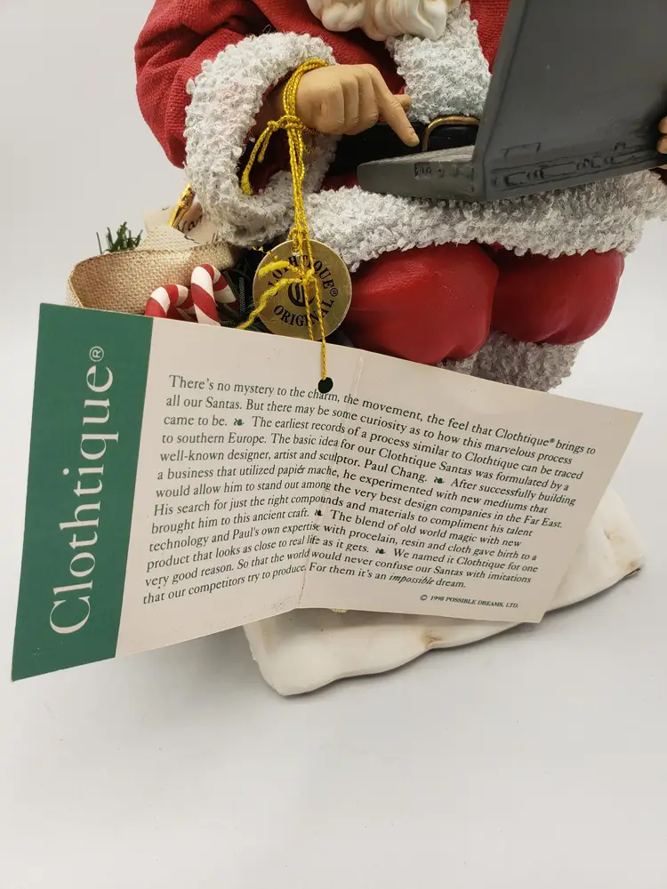 Vintage Clothtique Possible Dreams Santa's New List Computer Laptop Naughty Nice. Made in 1998. Item 713178. Measures about 9.25" tall, 6" long and 5" wide. Original tag, original bottom sticker and metal orb. Light wear. No box. Non-smoking home.