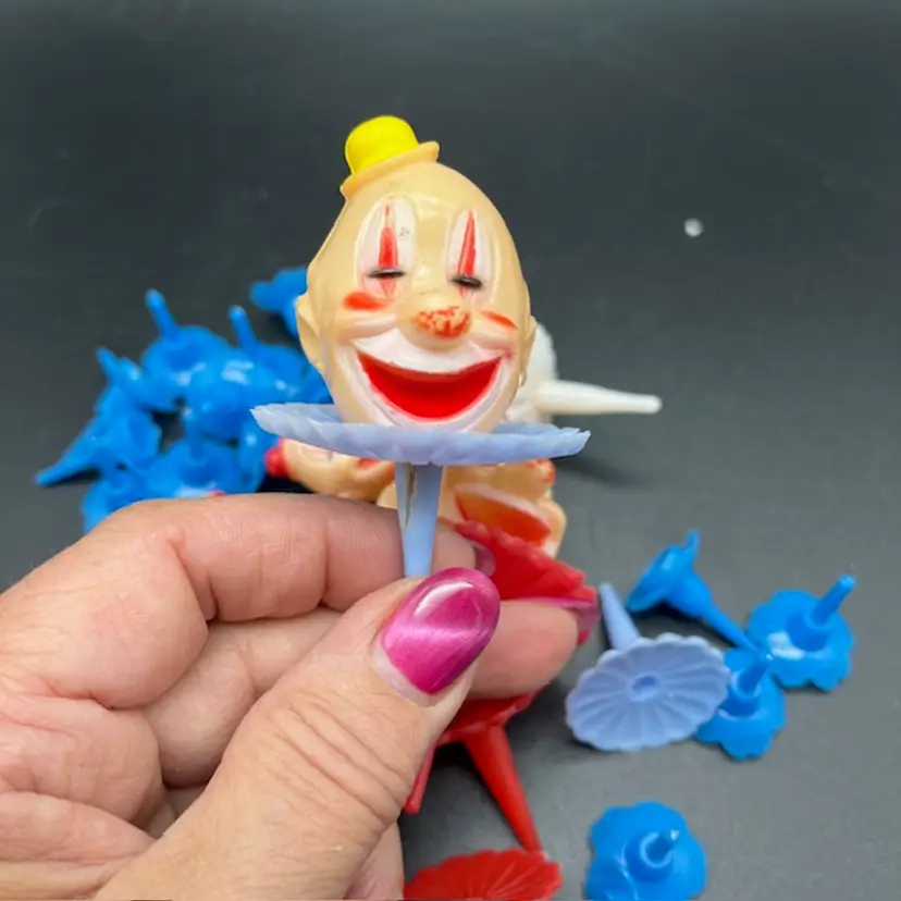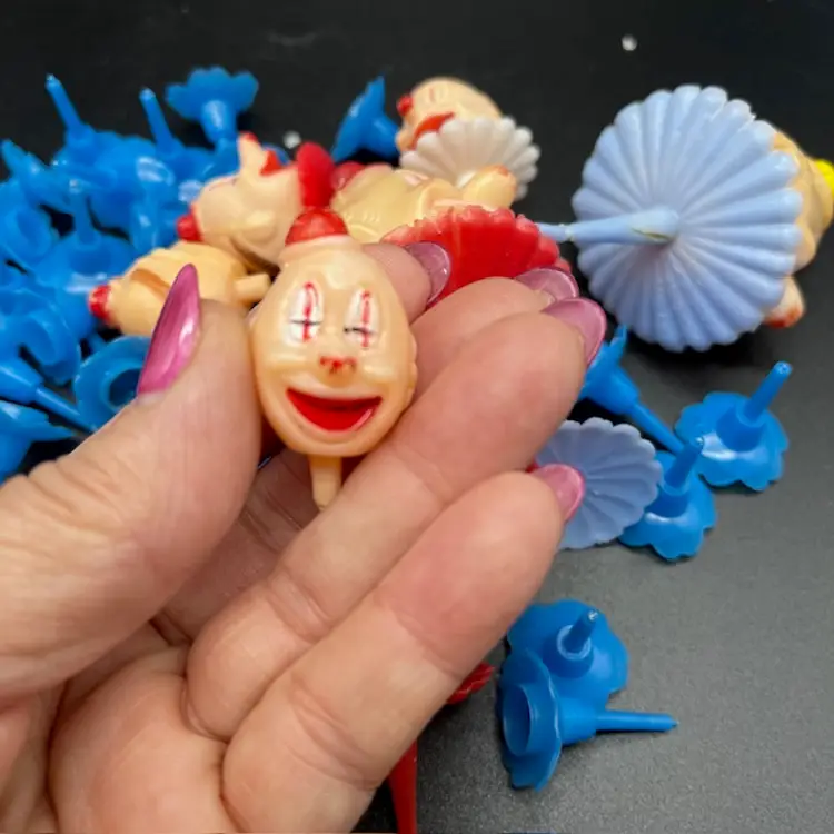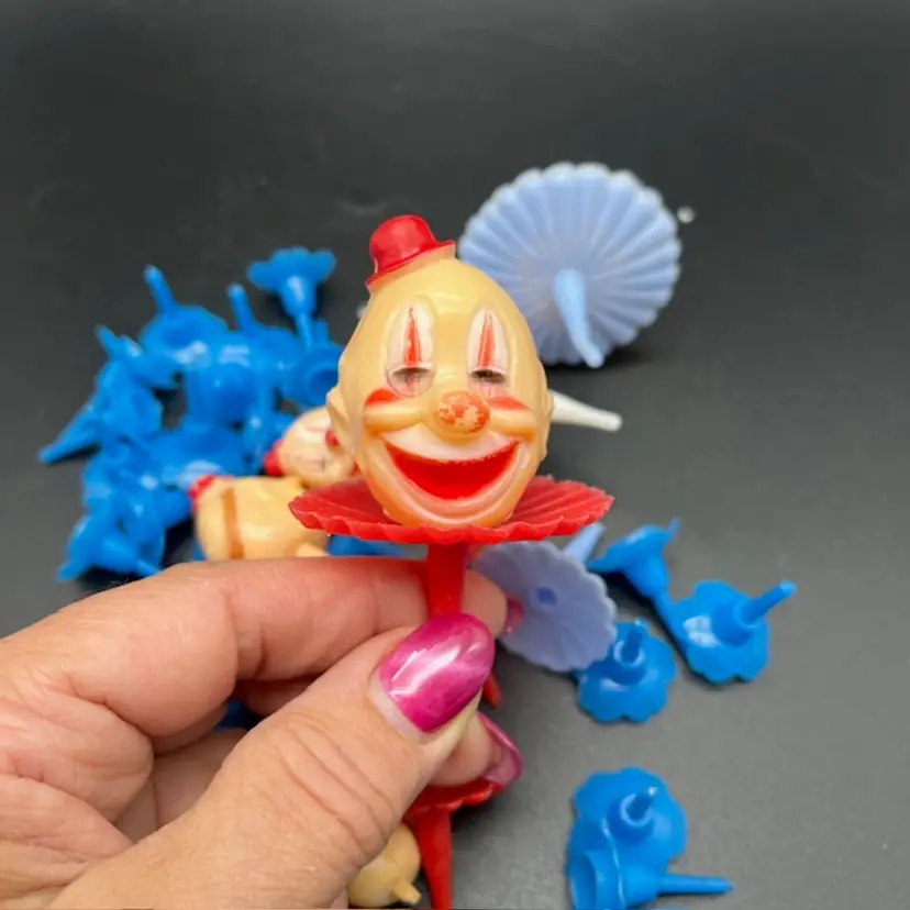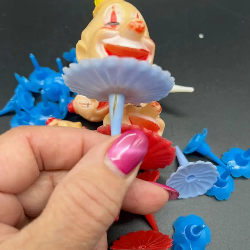 2 Large Clown Heads 4 Small Clown Heads 1 Small Clown Holder 1 Small Clown Head 23 Blue Candle Holders There are some condition issues with a couple but can still be used