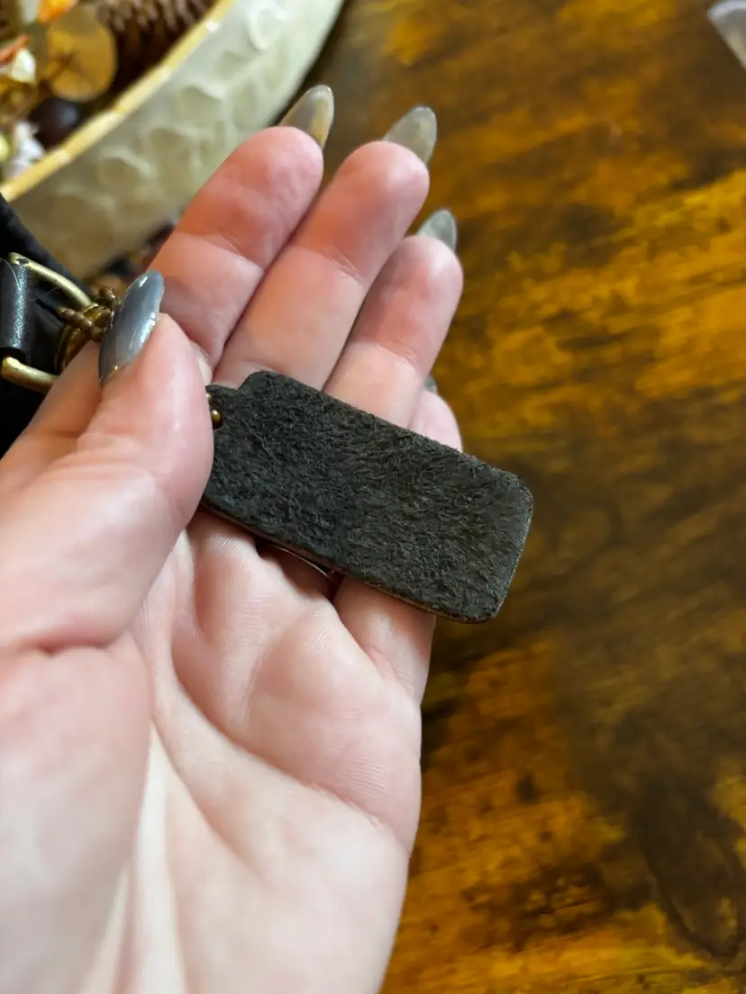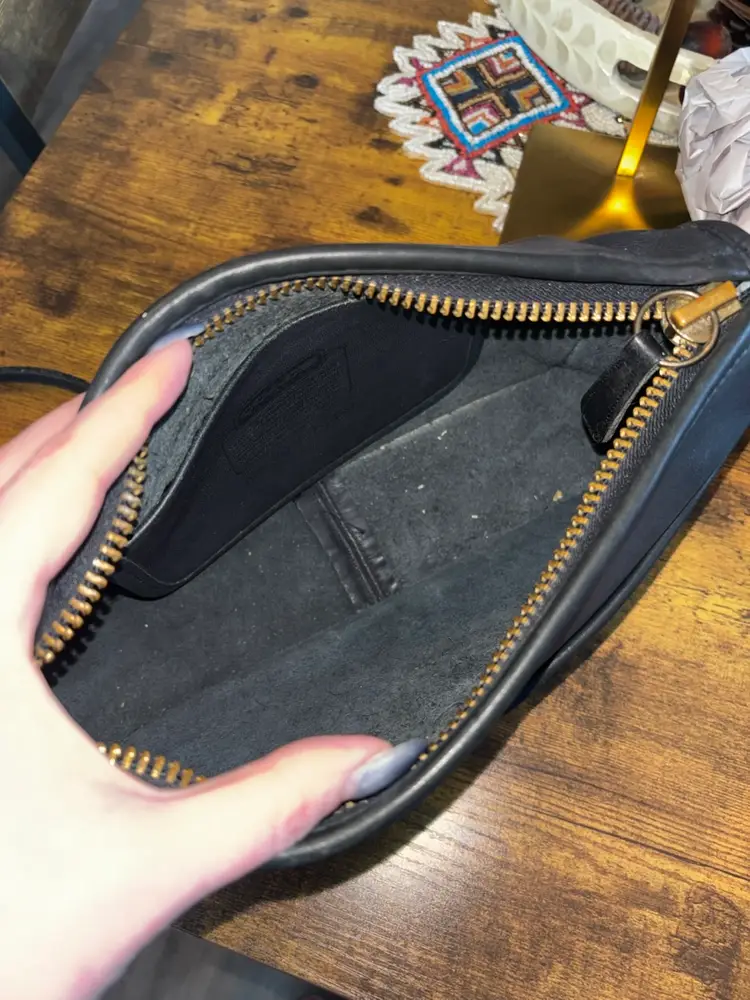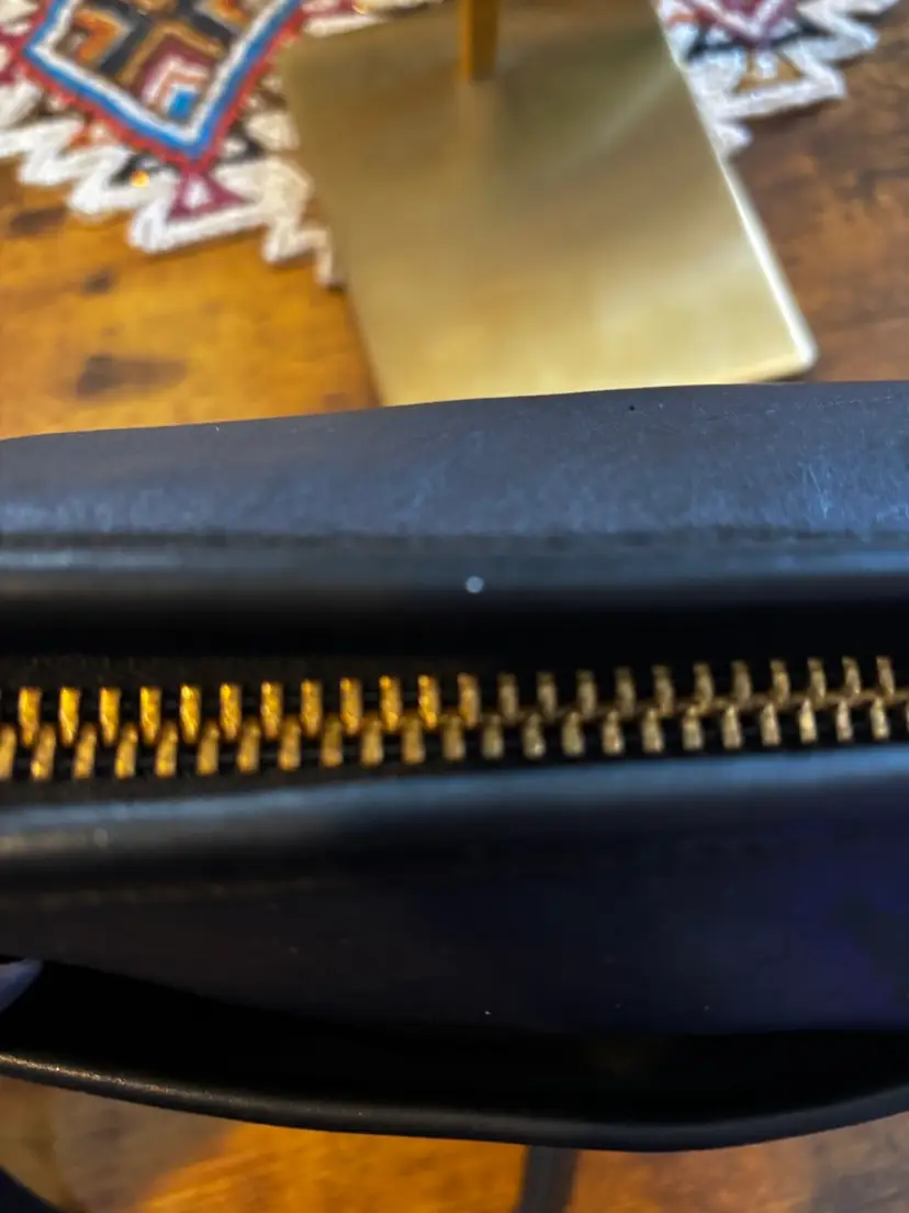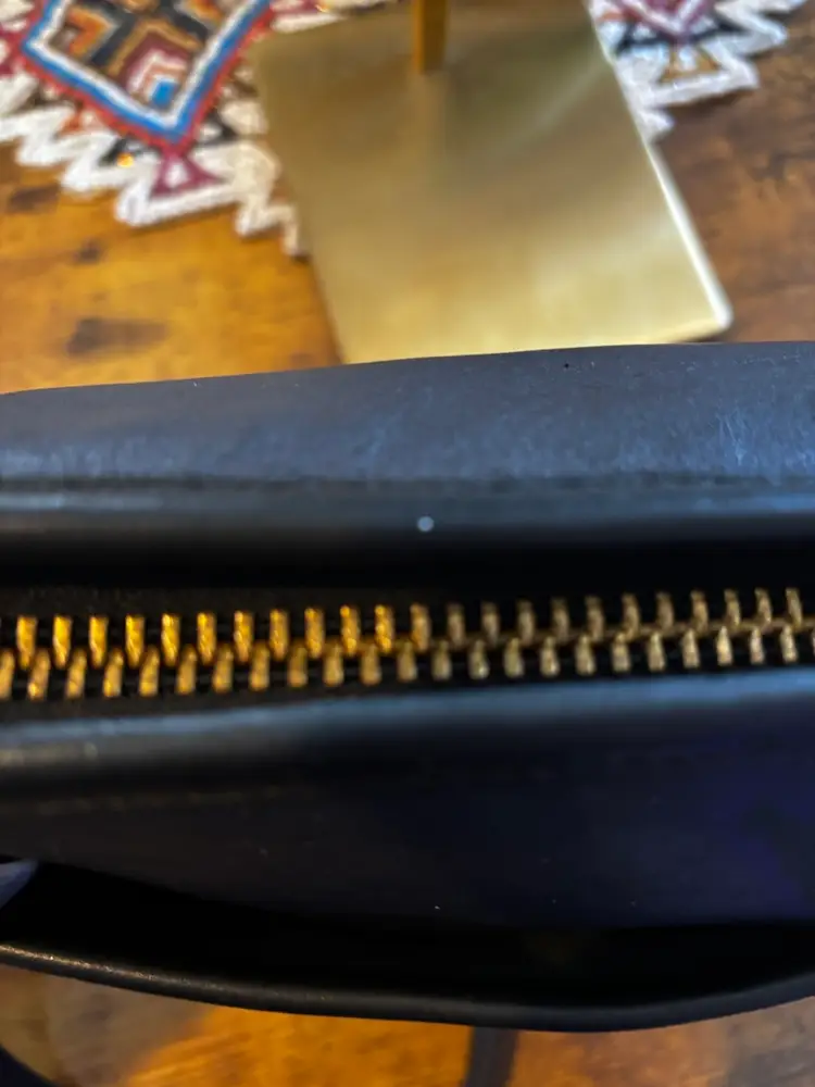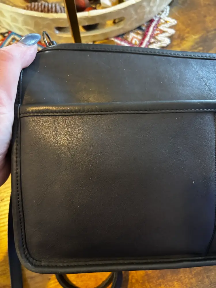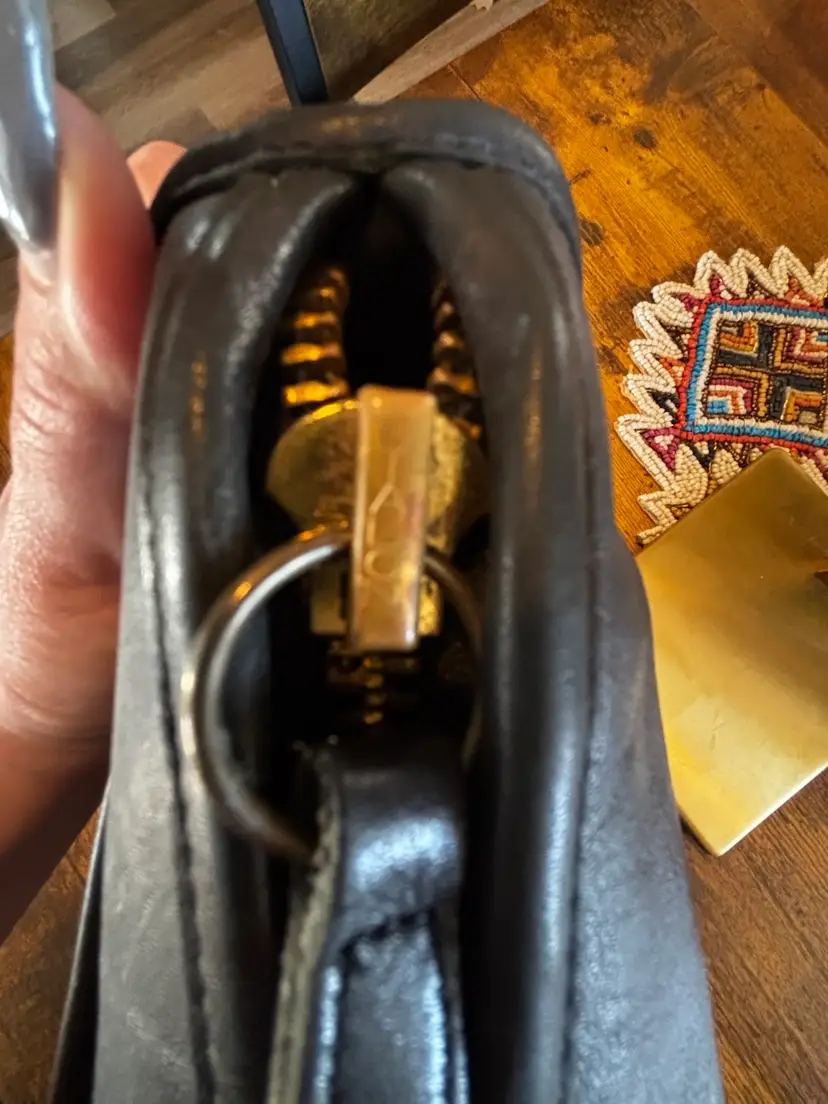 Leather remains supple with light wear consistent with age. Zipper functions smoothly.