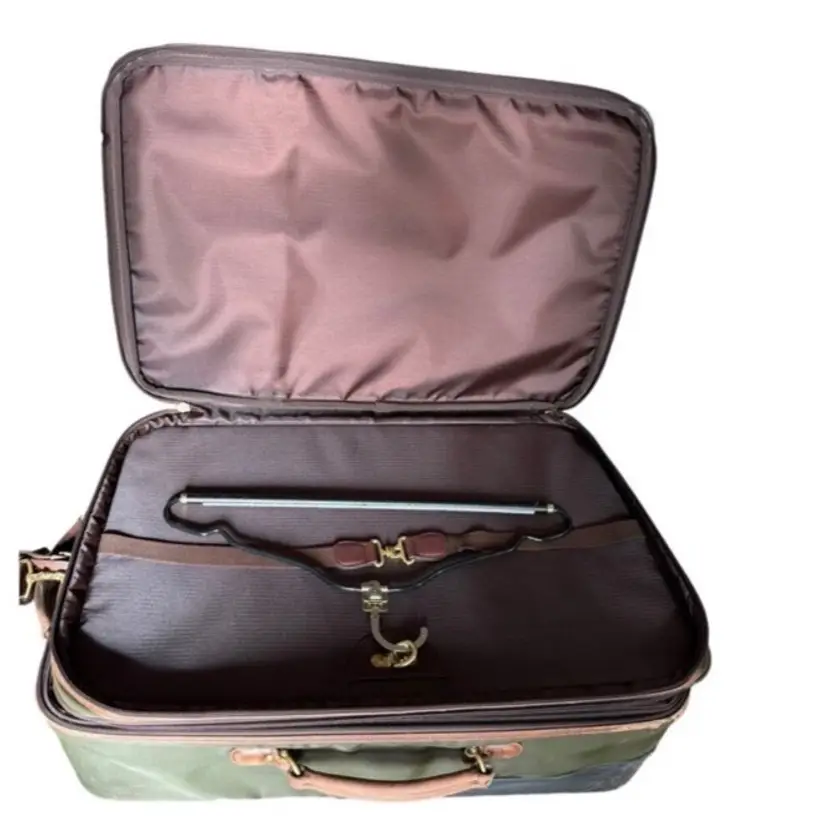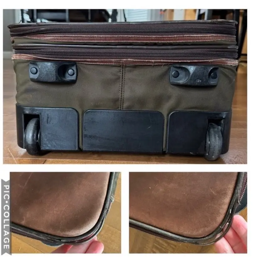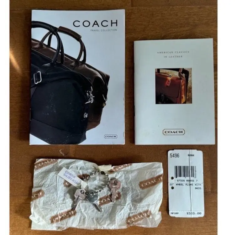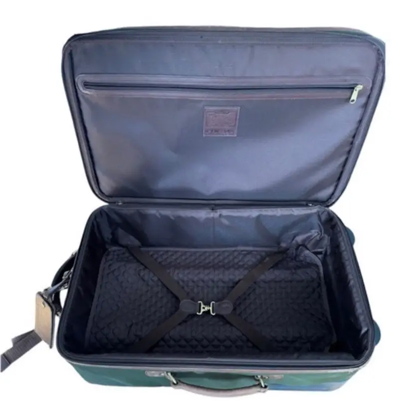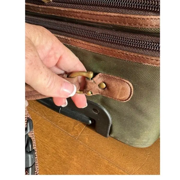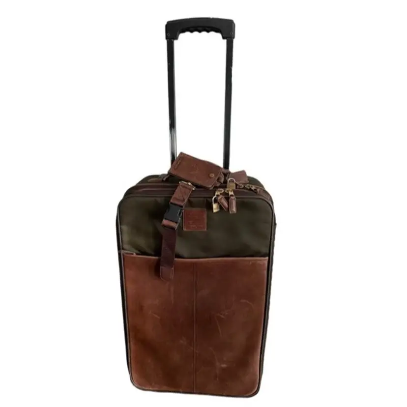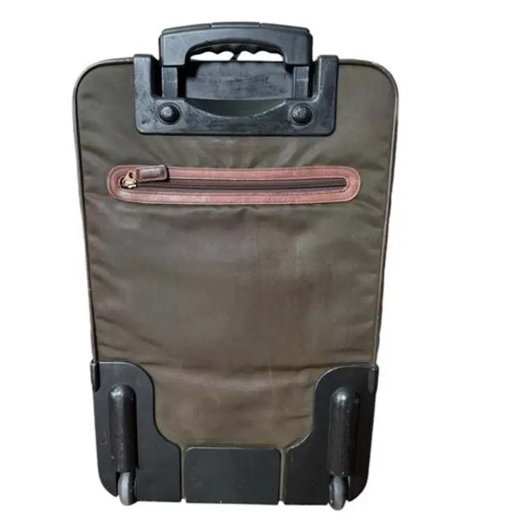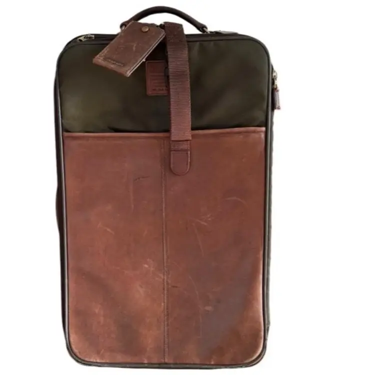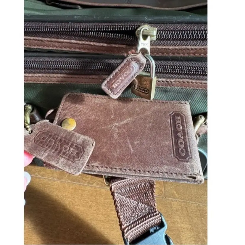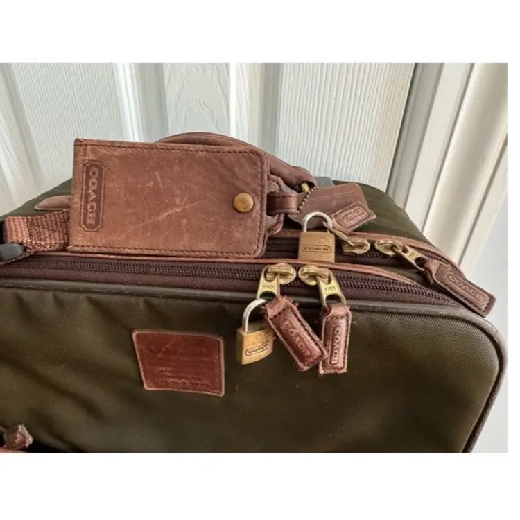 This COACH Two Tone Green Brown Leather Roller Suitcase is a perfect carry-on luggage for travelers. With a sturdy build, it can easily withstand all kinds of travel conditions. The bag comes in a stylish two-tone design of green and brown leather, giving it a unique look. The suitcase has a size of 22 inches, making it the perfect size for short trips. It features an upright design that adds to the convenience of handling and carrying it around. The bag comes with several features like multiple zippered compartments, making it easier to organize your belongings. The suitcase is perfect for unisex adults who prefer to travel in style. In is good vintage condition, inside is prefect and outside with minor scuffs and two small corners worn, to handle wearing as seen in pictures Measurements are appropriate Height 22” Height total with wheels and handle 37.5” Length 14” Depth 8” Any question please ask Five-star seller Same day shipping or next Bundle discount available