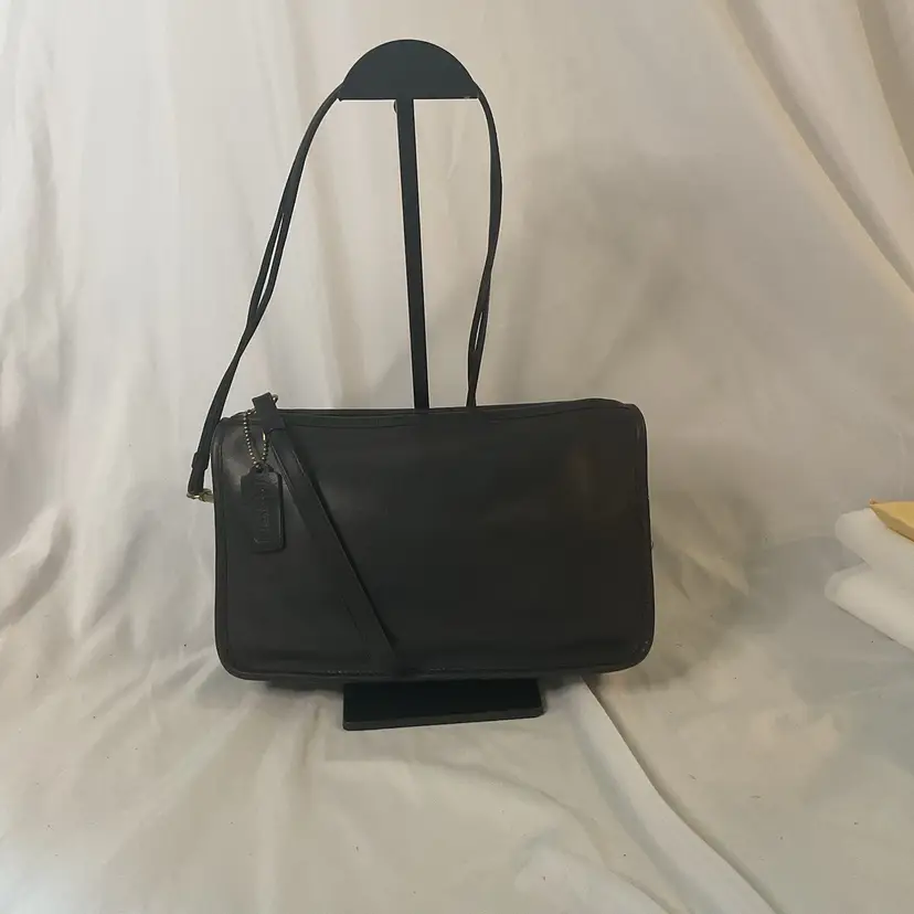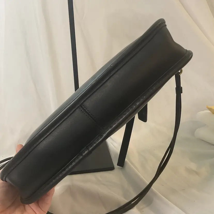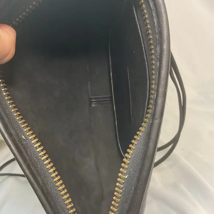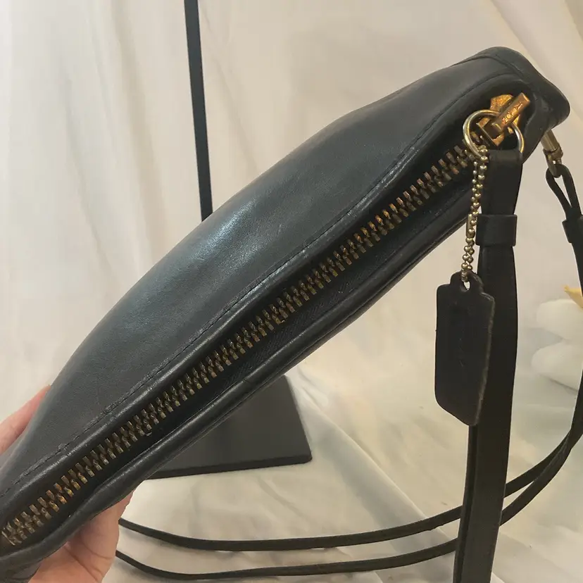 Very good NYC Bonnie Cashin era clutch. Black with brass hardware. Original hang tag. Removable double strand strap. Only conditioned with Leather CPR. Authenticated by FBCC. Interior clean Approximately 11 1/2“ x 7 1/2“ x 2“