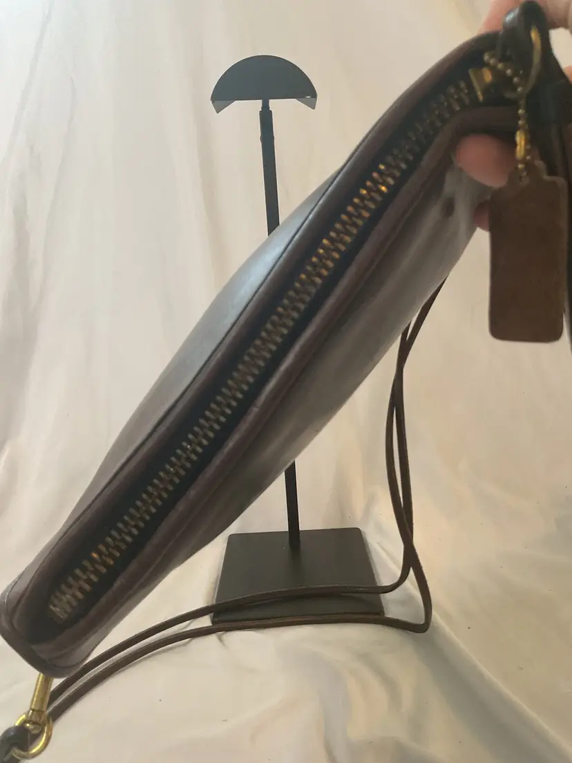 Glue in registration, Original hang tag. Leather has beautiful striated markings to bottom. Removable double strand strap. Authenticated by Authentic Detective and is included. Approximately 11” x 7.5” x 2” #9455 All my bags are UV and vinegar treated, color tested with lexol, and cleaned and conditioned.