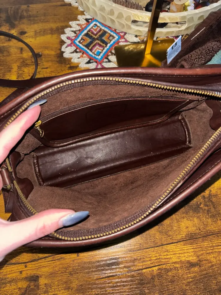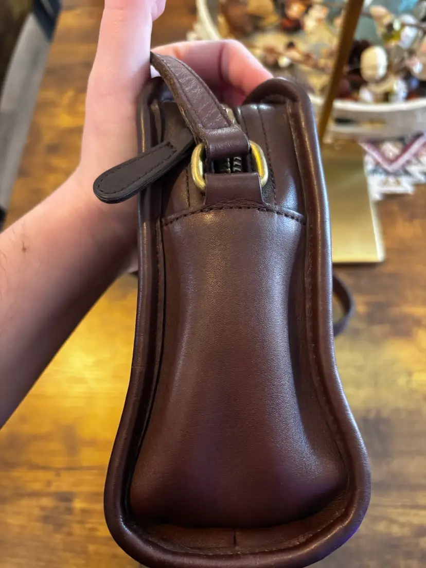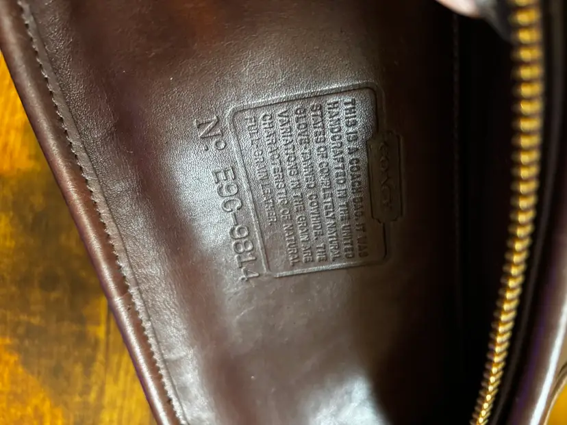 Condition: Great vintage condition overall. Leather is smooth and supple with light, natural wear consistent with age. Original Coach leather hang tag is present and was previously reattached (cosmetic repair only; see photos). Bag structure, stitching, zipper, and interior are all in excellent shape.