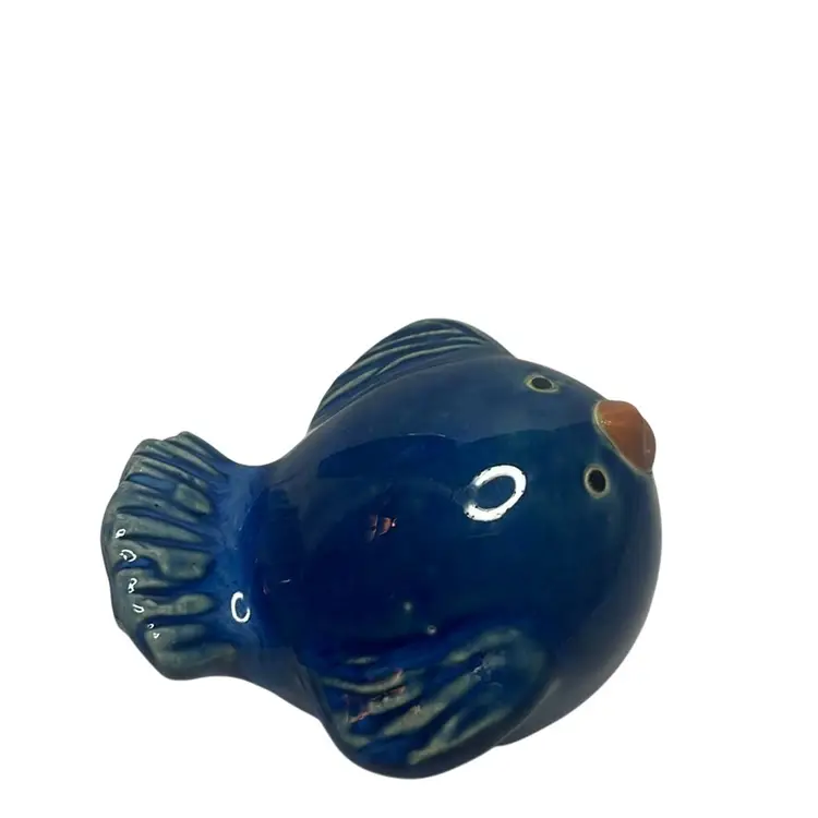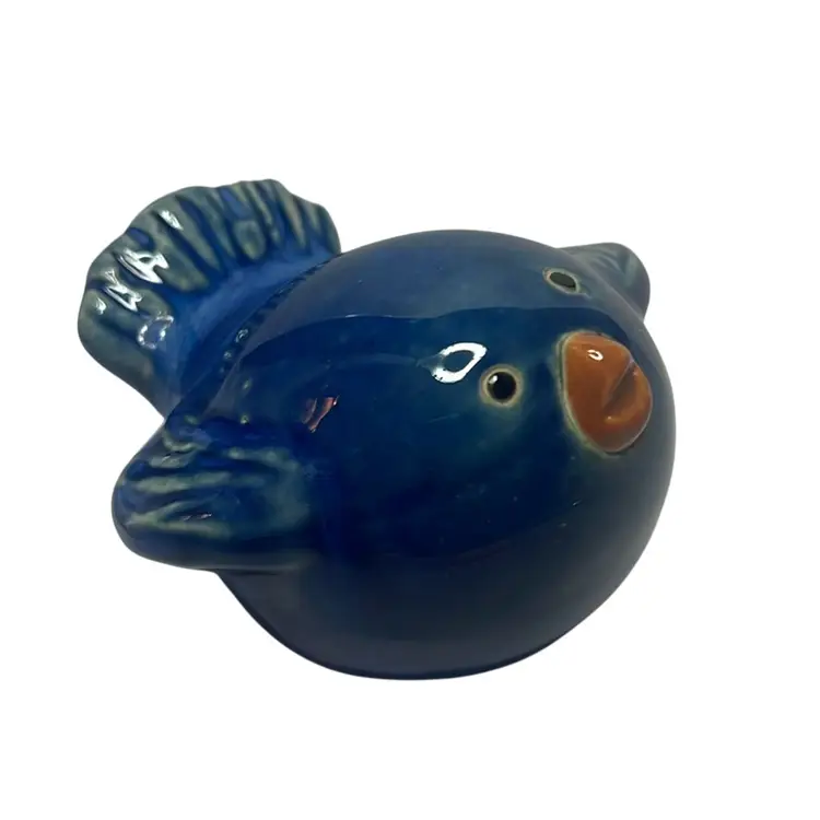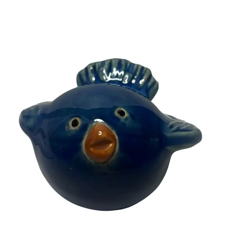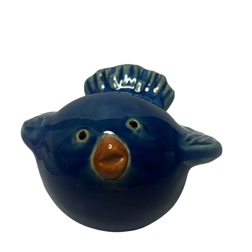 This fellow is a delightful chubby blue bird made in folk art style. He has no damage and would be happy to come to your home. Measures 2.5” tall & 3.5” wide