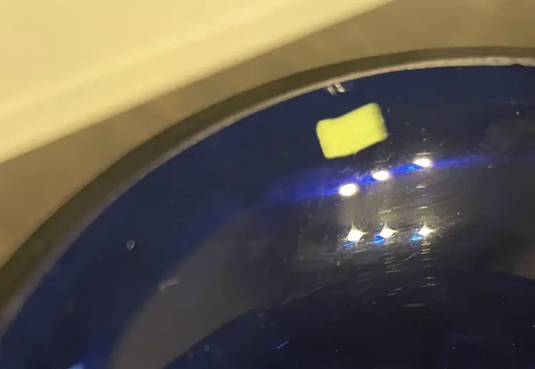 No cracks, No Scratches, it has a tiny, hard to see chip on the rim & a tiny raised mark (seems to be a darker blue and you can feel the mark) I provided a photos of this)