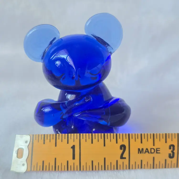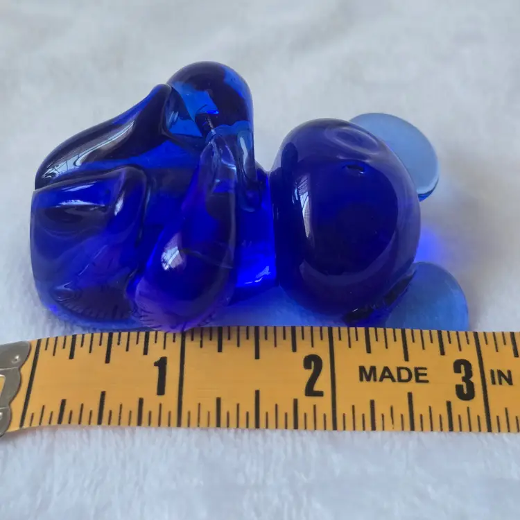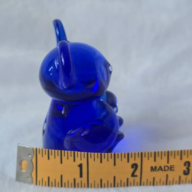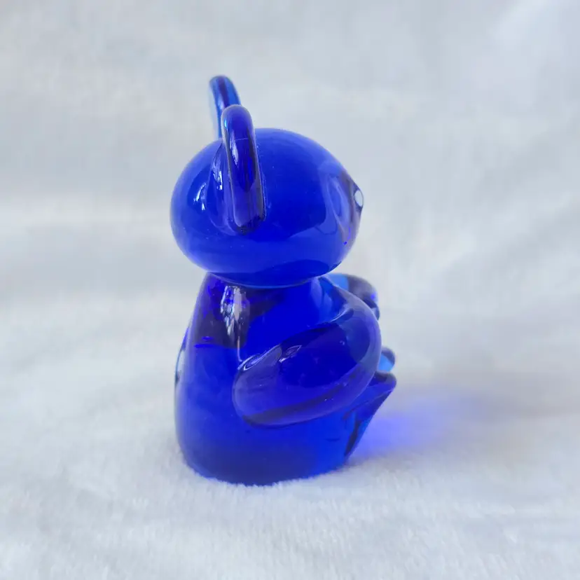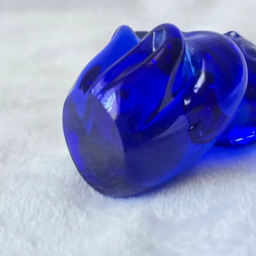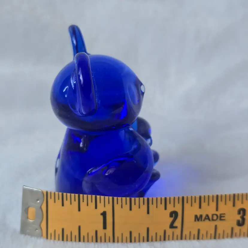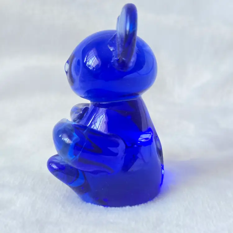 Charming vintage handblown glass koala figurine in rich cobalt blue with lighter translucent blue ears. The piece features a seated pose with folded arms, giving it both personality and display appeal. A wonderful find for collectors of animal glass or unique mid-century-style décor.