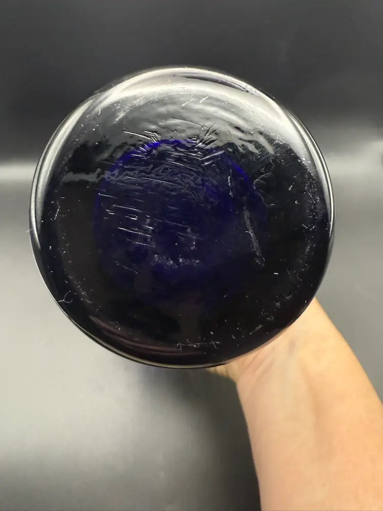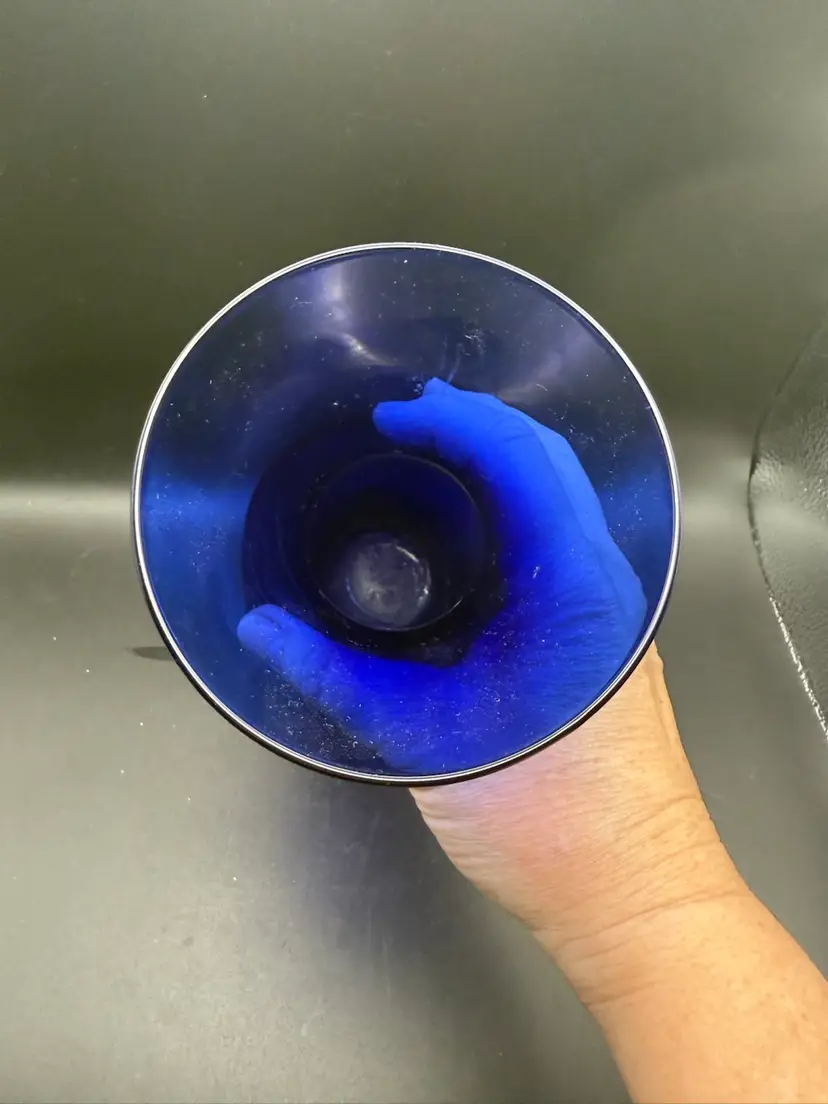 This elegant cobalt blue,hourglass shaped vase was popular in the mid to late twentieth century.