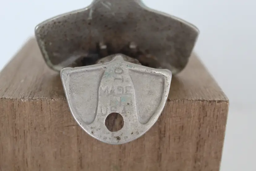 The Vintage Coca Cola Bottle Opener Starr "X" Wall Mount is a decorative and functional piece that adds a touch of nostalgia to any space. Made in the USA, this original silver bottle opener features the iconic Coca-Cola branding and is designed to hold your favorite soda caps. Perfect for collectors or those who appreciate vintage advertising, this piece is both a practical addition to your home and a unique conversation starter. Displaying a theme of soda and American craftsmanship, this Coca-Cola bottle opener is a charming collectible for enthusiasts of classic Coke memorabilia.