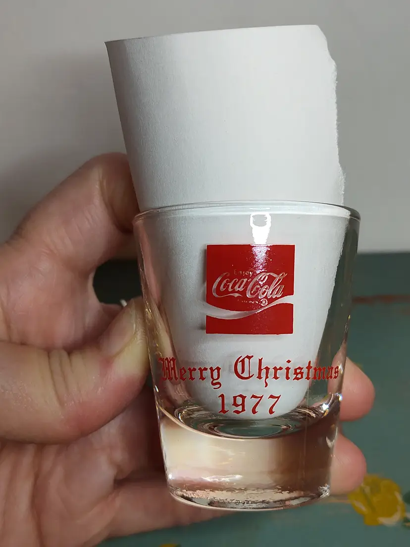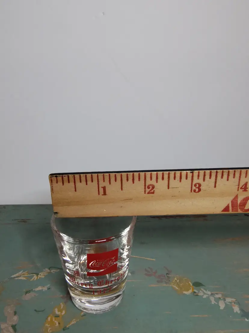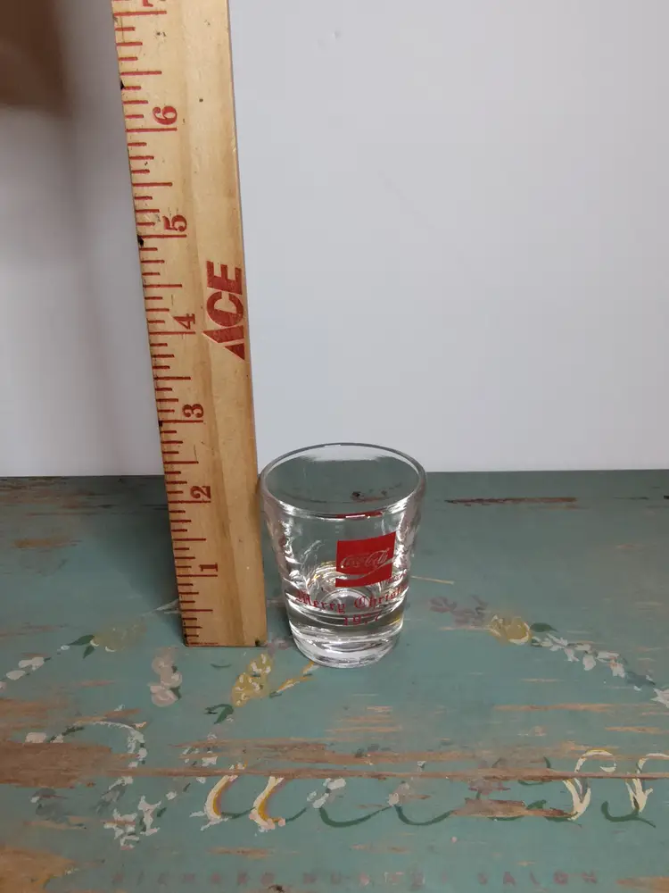 1977 clear glass shot glass- printed on 1 side