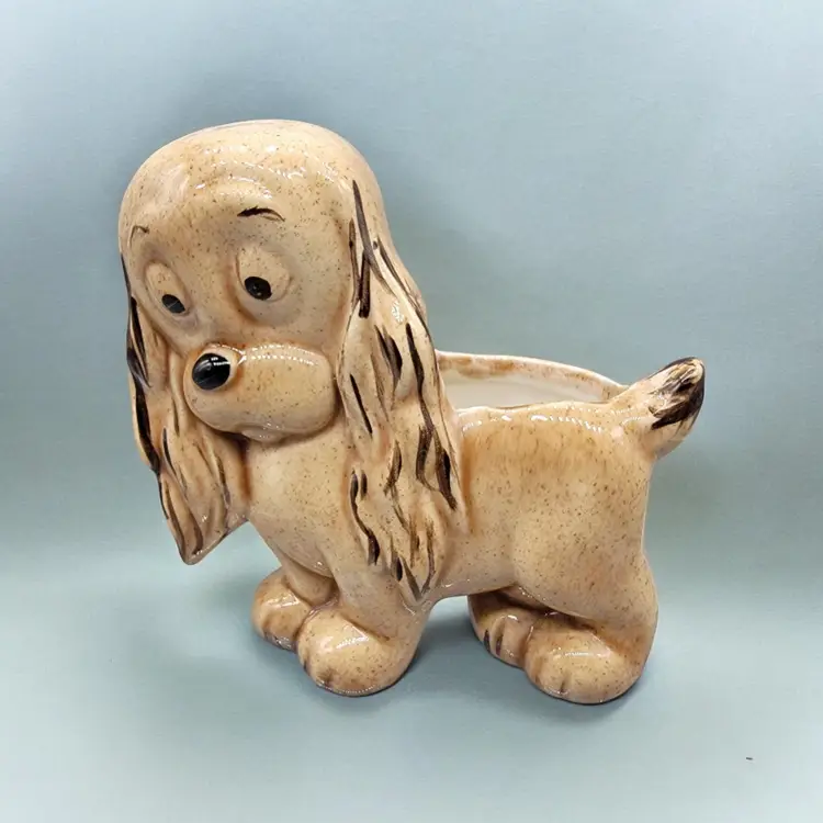 This is an adorable brown hobbyist cocker spaniel sad eyed planter. Condition: pre-owned; no chips, cracks or crazing; see photos Measurements approximately: 4.25" tall; 5" long; 2.5" wide SKU 202406 Fragile-F