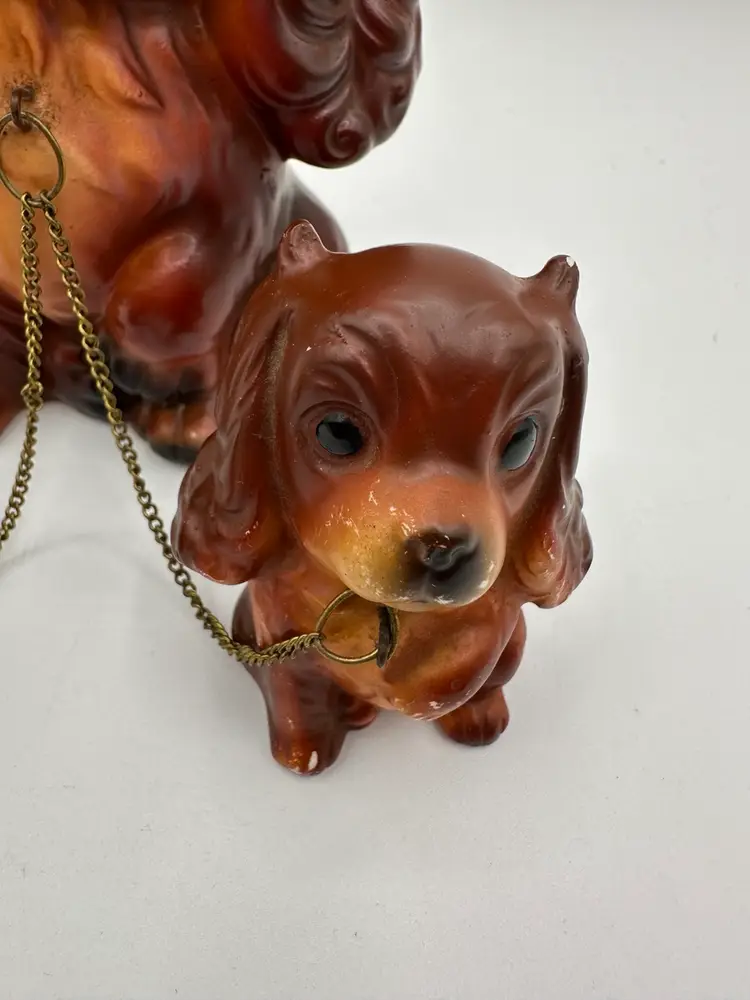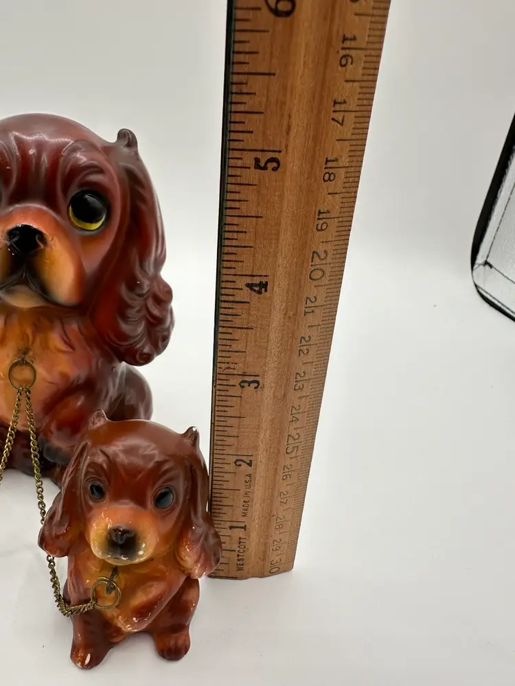 These vintage cocker spaniels are big eyed and adorable. They do have some vintage ware witj slight paint that has worn off, as seen in pictures. No chips or cracks