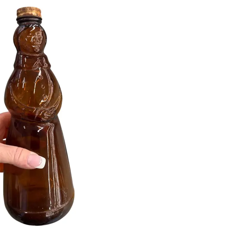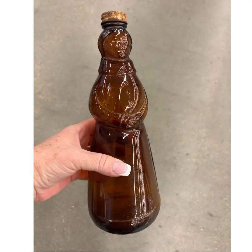 10" Tall 24 oz Mrs. Butterworth's Glass Syrup Brown Bottle Metal Cap. It has no label but has the metal cap though it’s rusted it’s in one piece It's 10" tall, holds 24 oz, it's in very good condition, no damages, cracks, chips or flea bites. Vintage Mrs. Butterworth's amber glass syrup bottle It is an older glass version, as the original glass bottles began to be replaced with plastic in 1999 These bottles were introduced in 1961