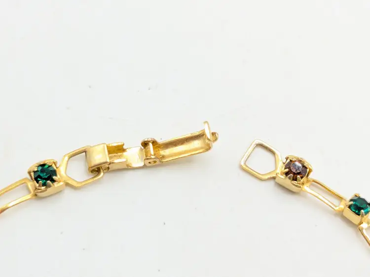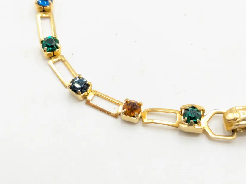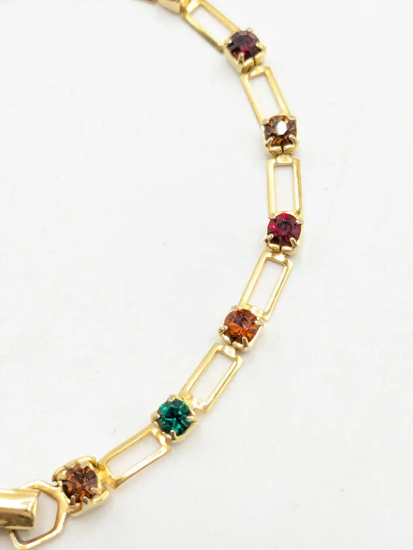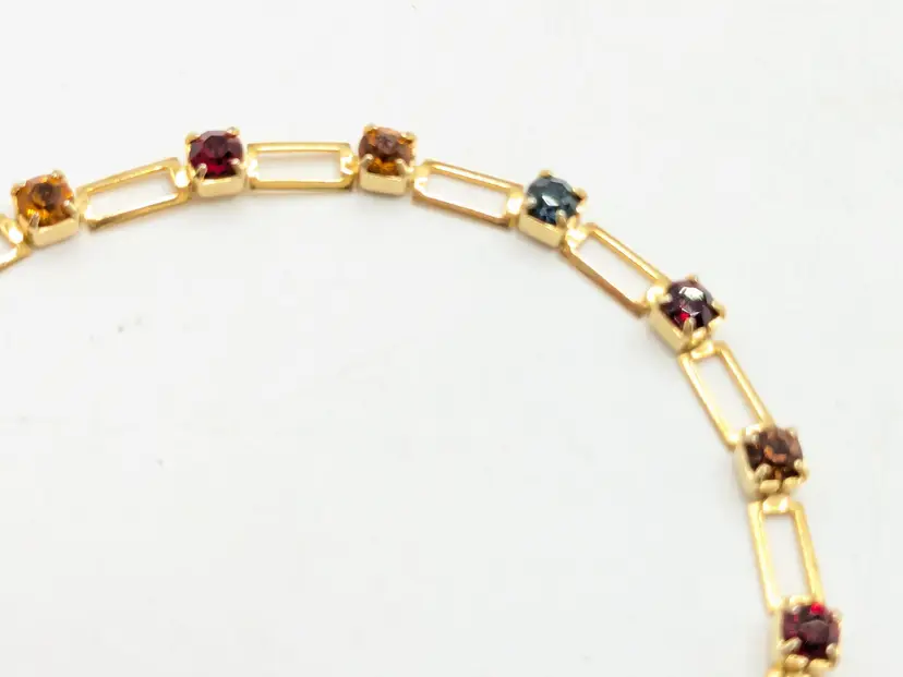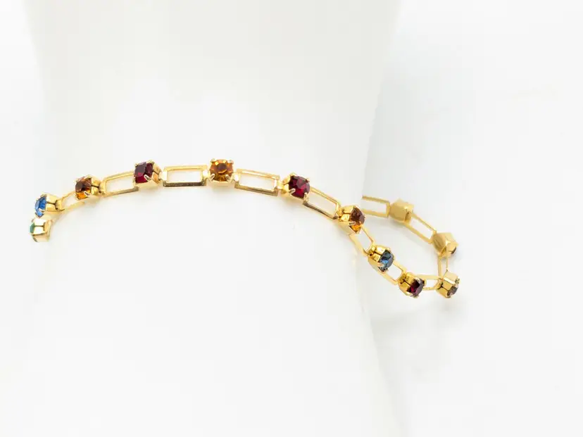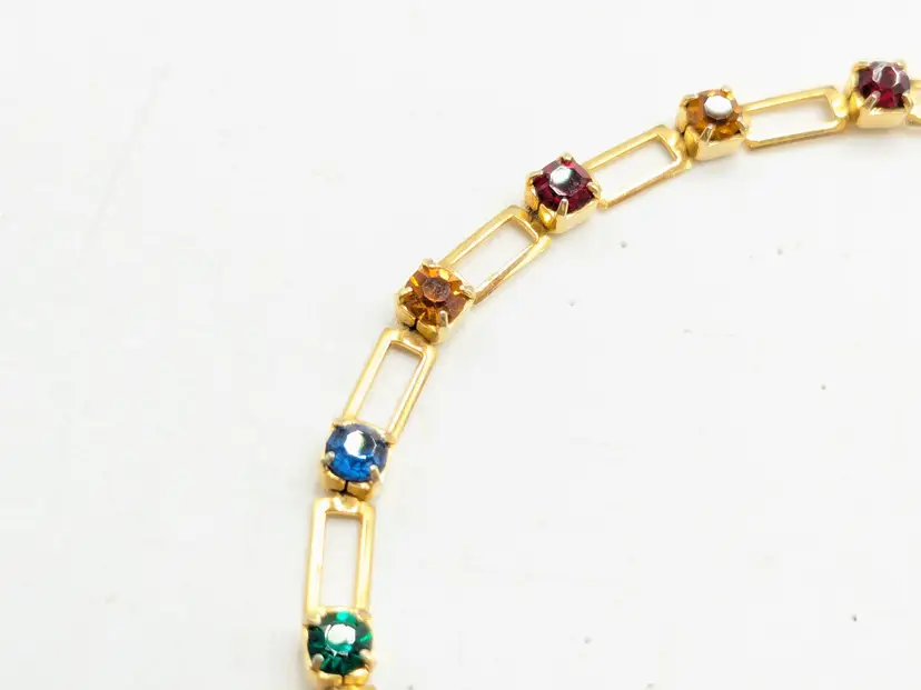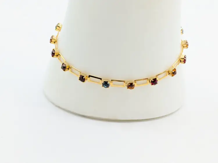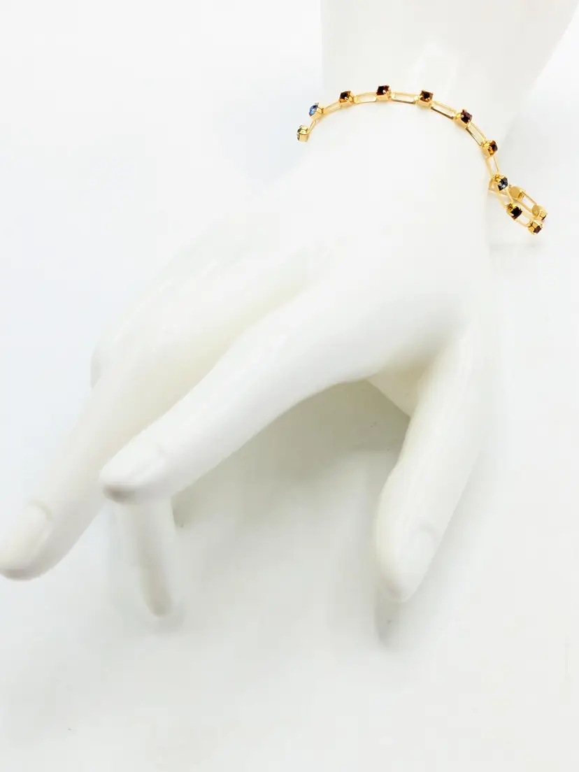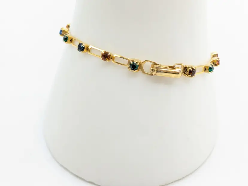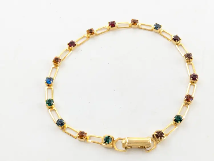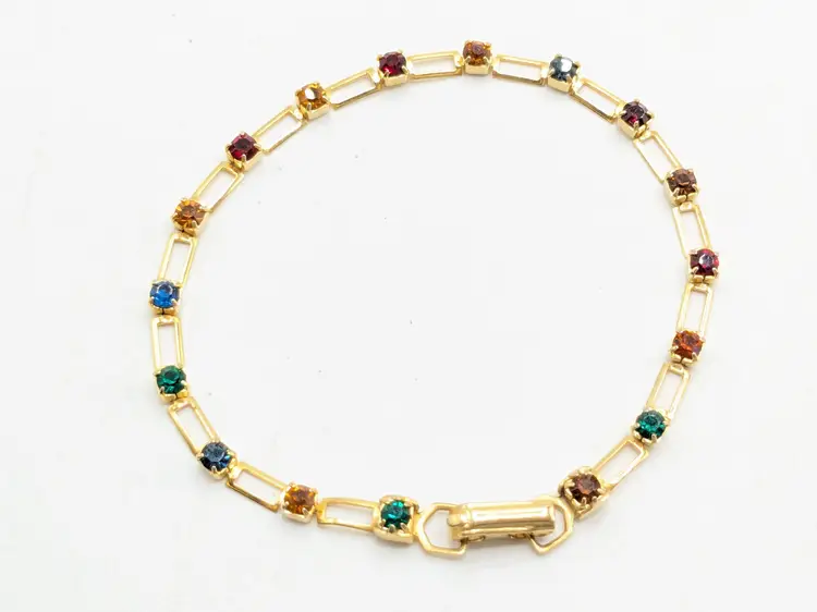 Beautiful and dainty. Gold-tone bracelet features a series of colorful gemstones. Perfect for adding a pop of color to any outfit. Measures 7 inches. (EN2)