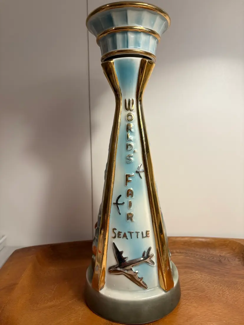 The Vintage Commemorative Seattle World's Fair Jim Beam Space Needle Decanter is a unique collectible item that pays homage to the 1962 Seattle World's Fair. This decanter showcases the theme of World's Fairs and serves as a historical piece of memorabilia from the fair. With its specific reference to the Seattle World's Fair, this item is a must-have for collectors and enthusiasts of fairs, parks, and architecture from the 1960s. I attended the Seattle World’s Fair when I was nine years old and have many fond memories in later years of dining at the top of the Space Needle.