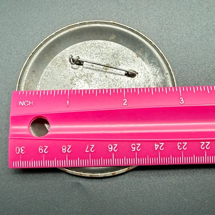 Poor Condition. Staining and a small dent on the front. Back is tarnished. Measures 3".
