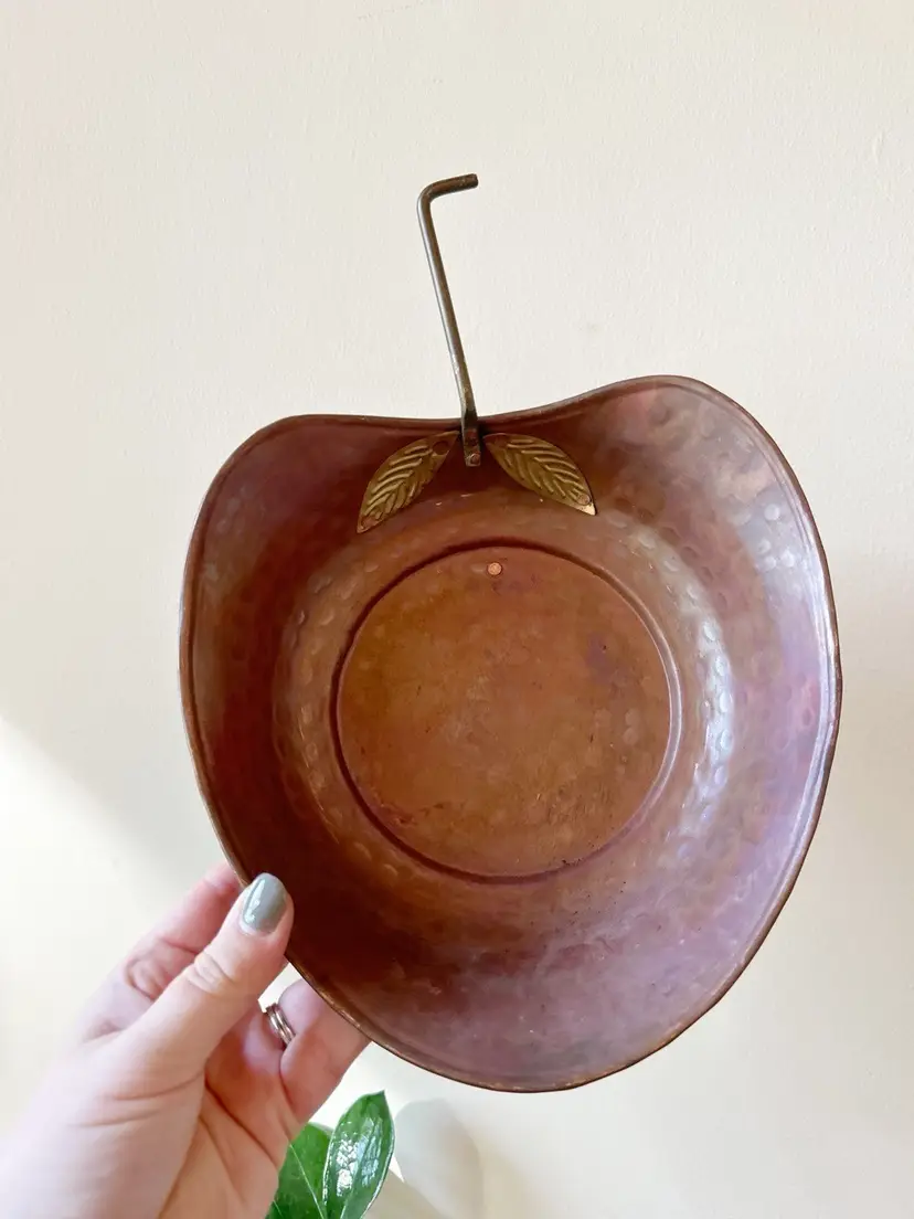 Vintage copper apple wall decor. Good condition. Measures 8 1/4 x 12 inches.