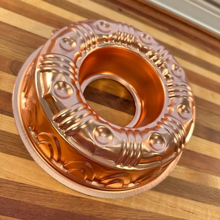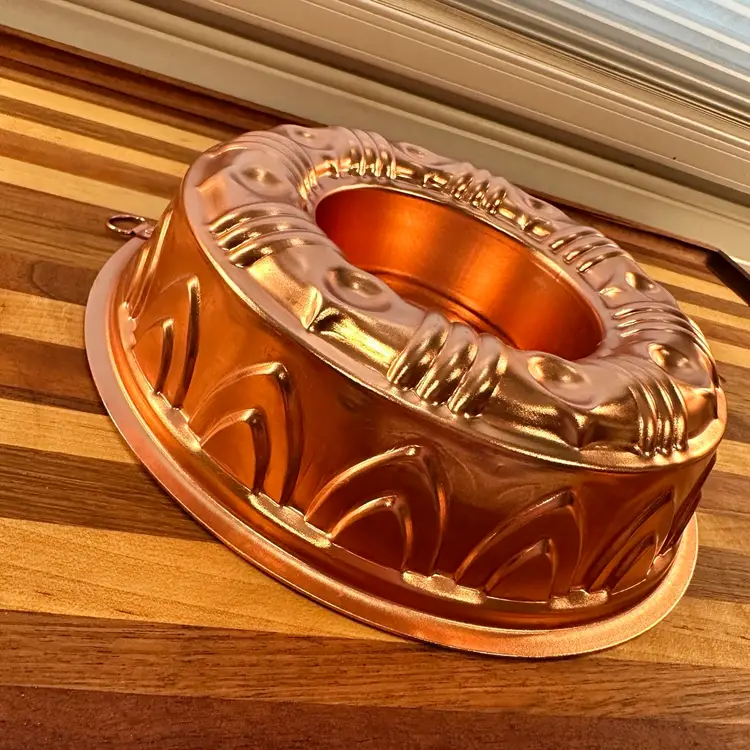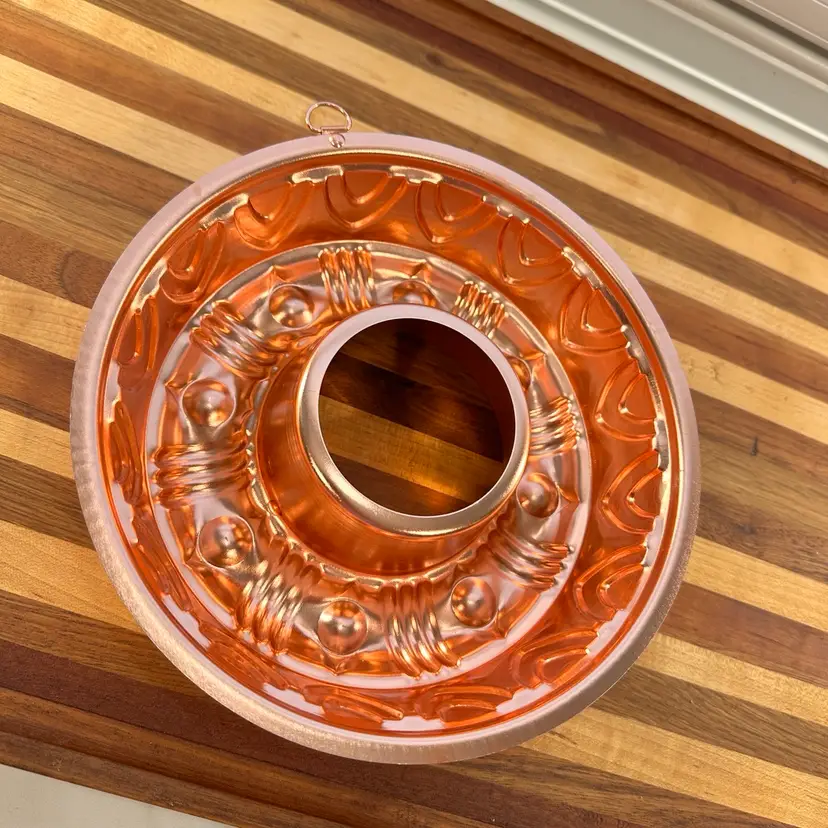 vintage copper-toned aluminum jello mold or bundt cake pan