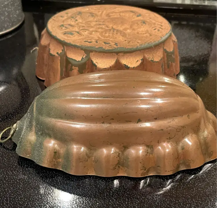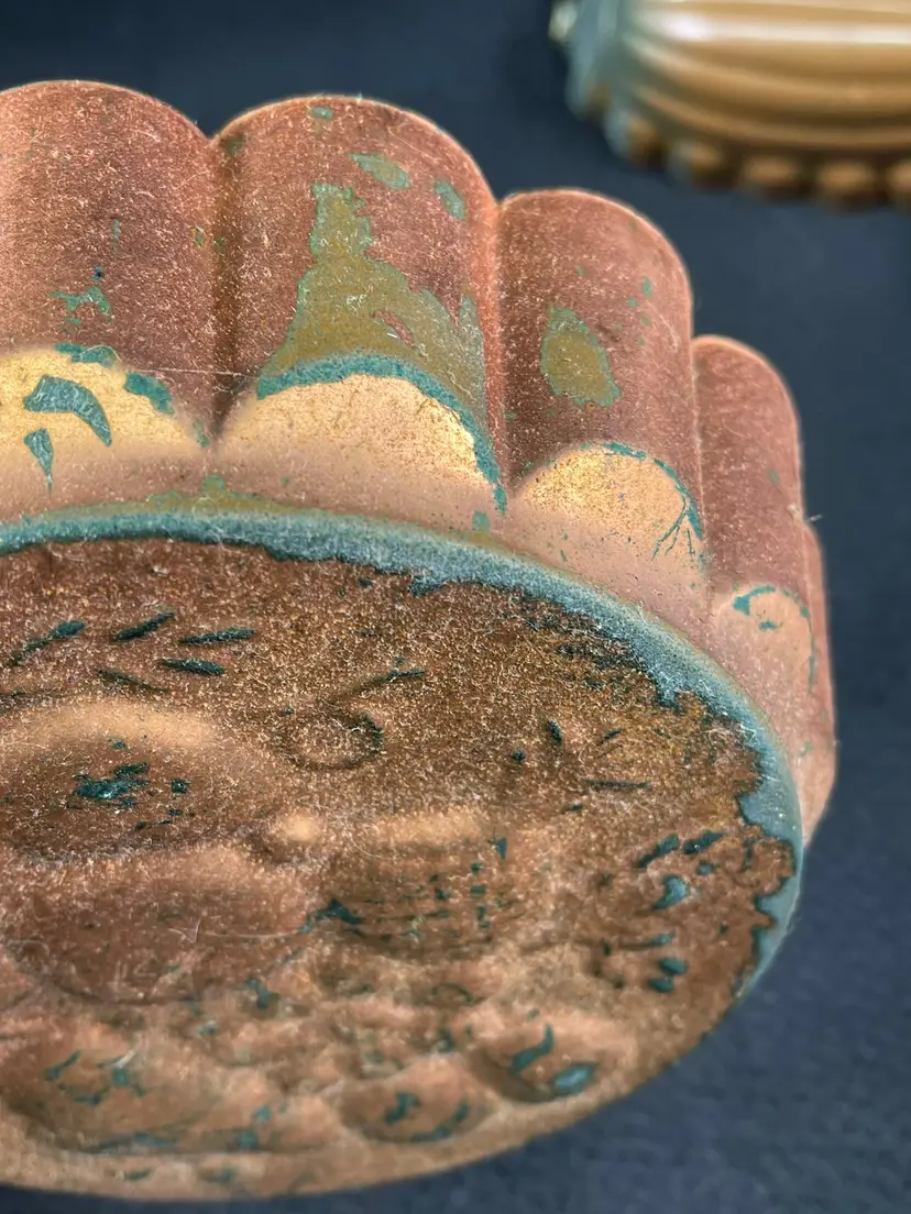 A trio of vintage molds all with original patina (some are sticky). They measure 5 x 9" and 8" & 9" round.