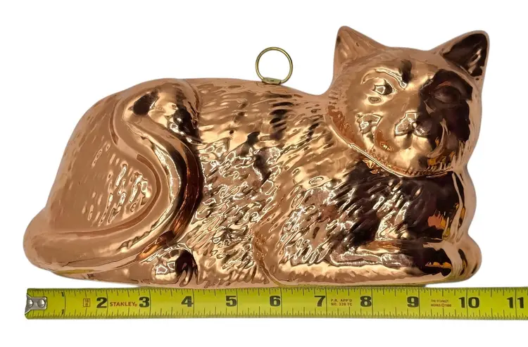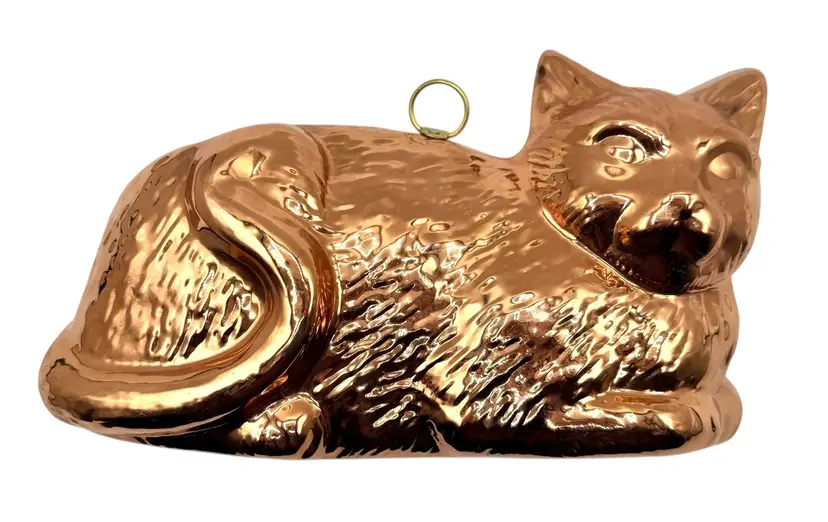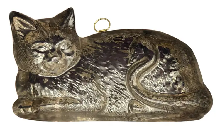 Copper over tin cat mold with mount for hanging.