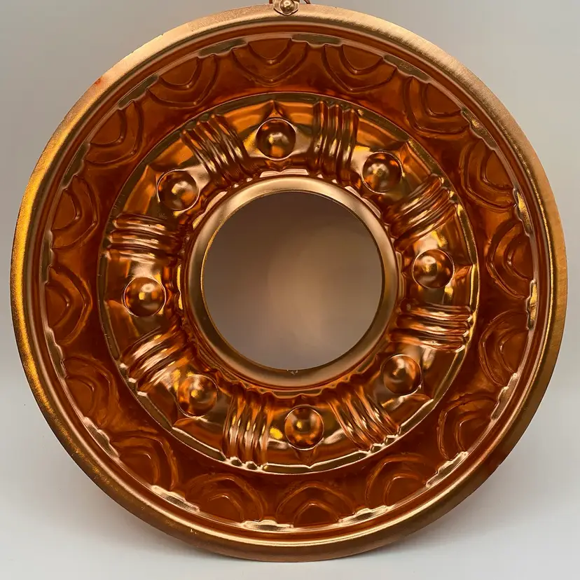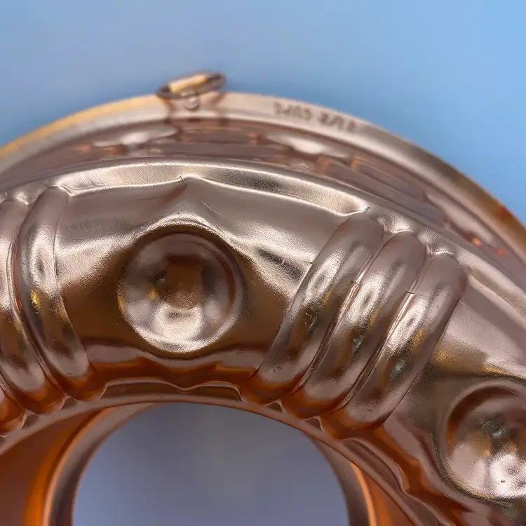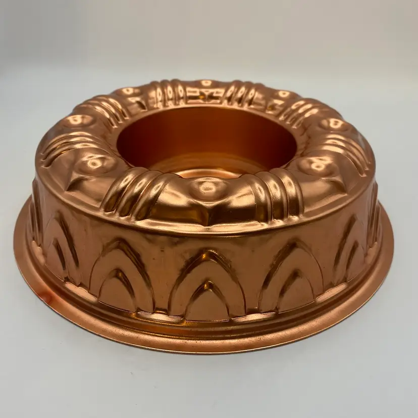 Vintage Copper Tone Round Aluminized 8.5" Cake Jello Mold 3 1/2 Cup Hanging Ring