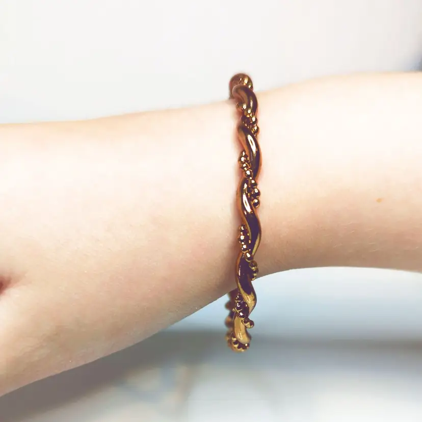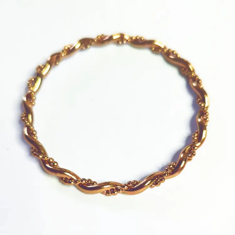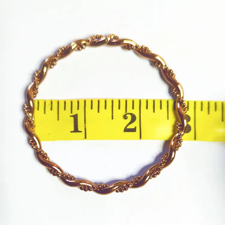 Vintage Copper-Toned Twisted Rope Design Bangle Bracelet 2.5" Diameter. Condition is preowned. This vintage bangle features a charming twisted rope design, adding a touch of elegance to any jewelry collection. Ideal for anyone who appreciates classic, timeless accessories. (FC03)