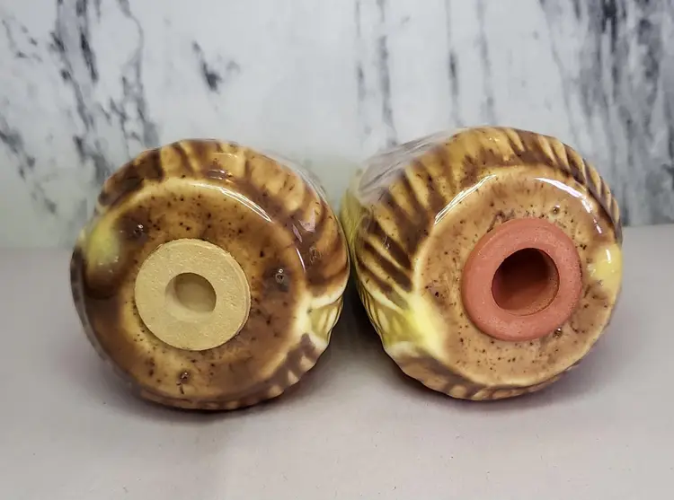 This salt and pepper shaker set comes with a small holder for them to sit on. I believe they were hand painted.