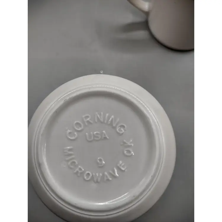Vintage Corning Ware Blue Lily coffee cups/mugs. The 2 cups/mugs are in excellent condition. They are a good size to hold and sip your coffee. The cups are 3 3/4 inches tall with a diameter of about 3 inches.