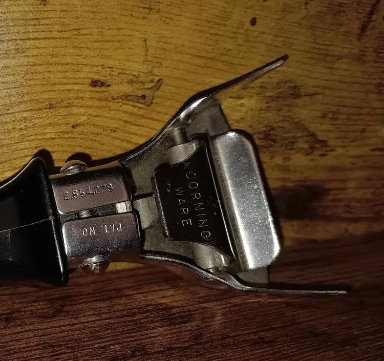Vintage Corning Ware handle for their cookware. Turn one of those casserole dishes to a pot to use on the stove! In good condition with no damages. It measures 7.5 inches long.
