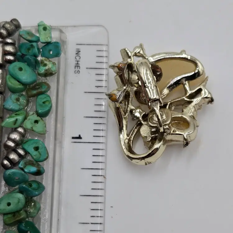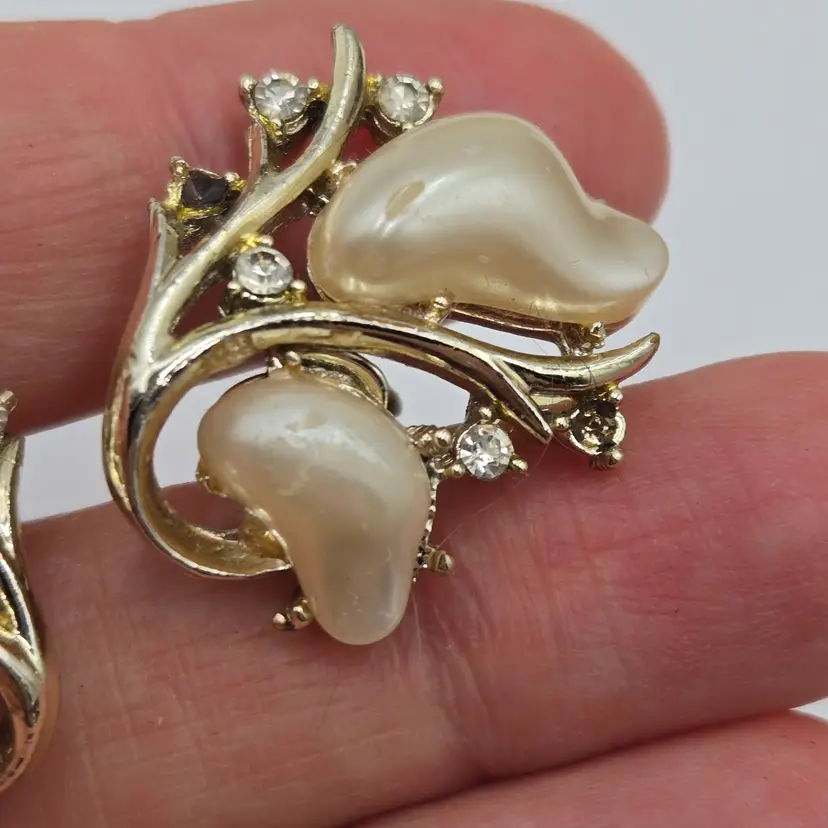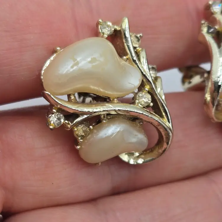 In great condition. Some signs of wear from use. Some luster from Faux Pearls has peeled. Please see pictures for more details.