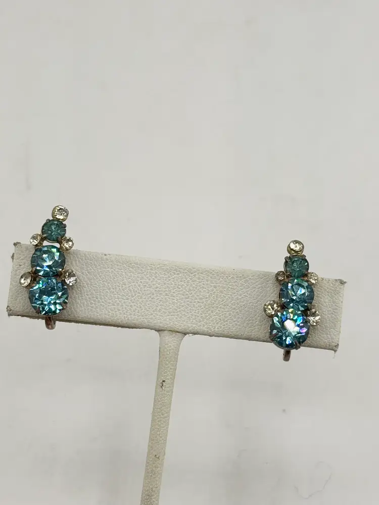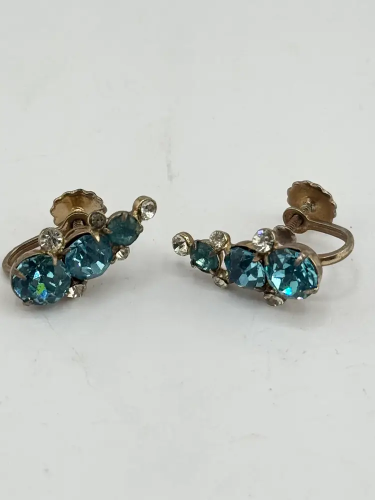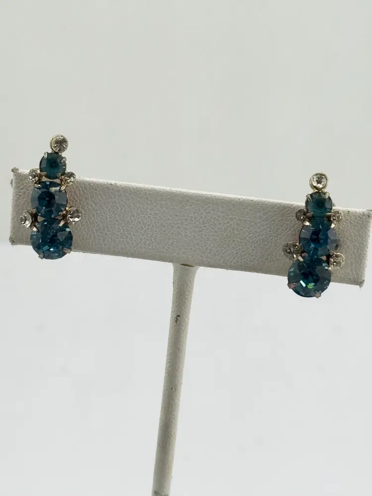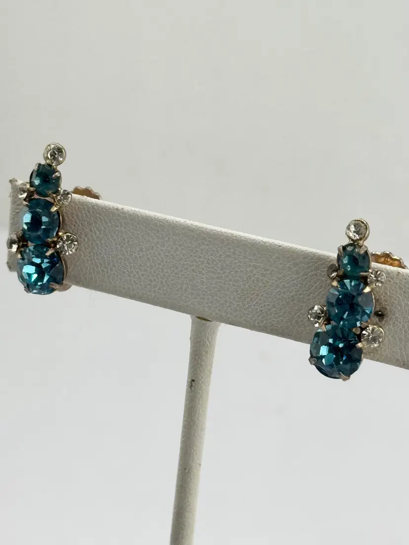 Vintage Coro blue rhinestone earrings. Signed Coro. vintage screw back earrings with prong set blue glass rhinestones. MN52GF.