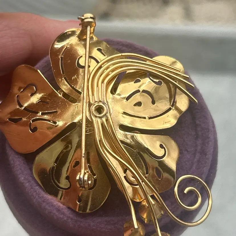 Additional dangling accent stones give the brooch movement and a unique, eye-catching presence. This is a classic mid-century Coro design—bold yet feminine, perfect for collectors or statement styling.