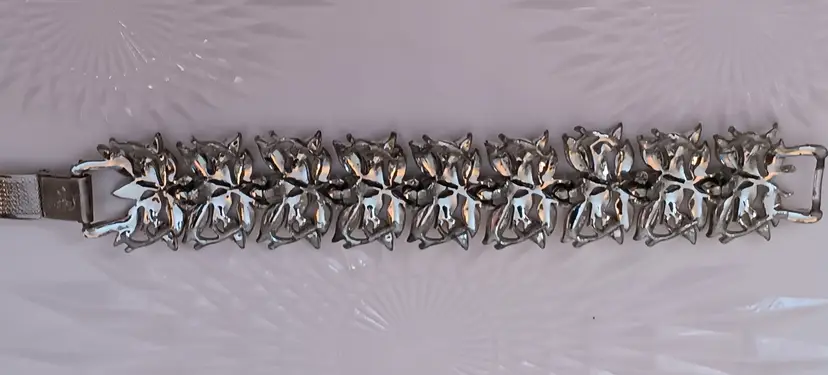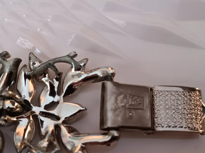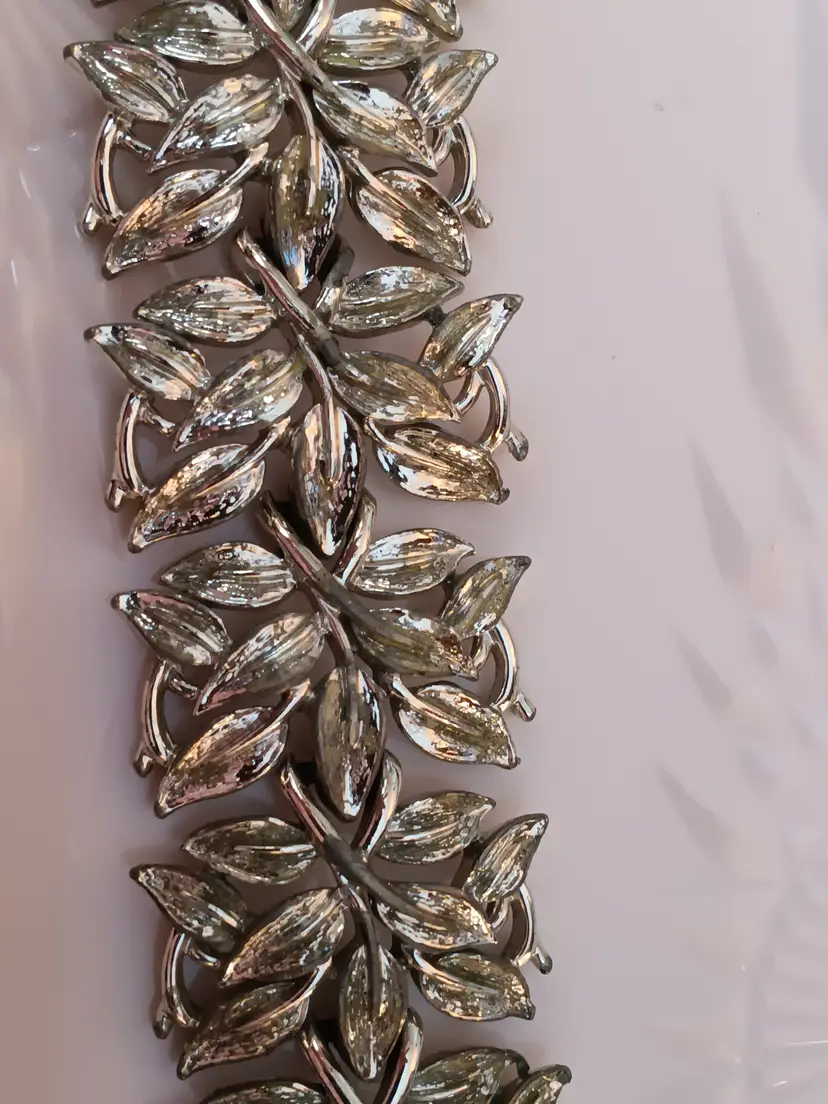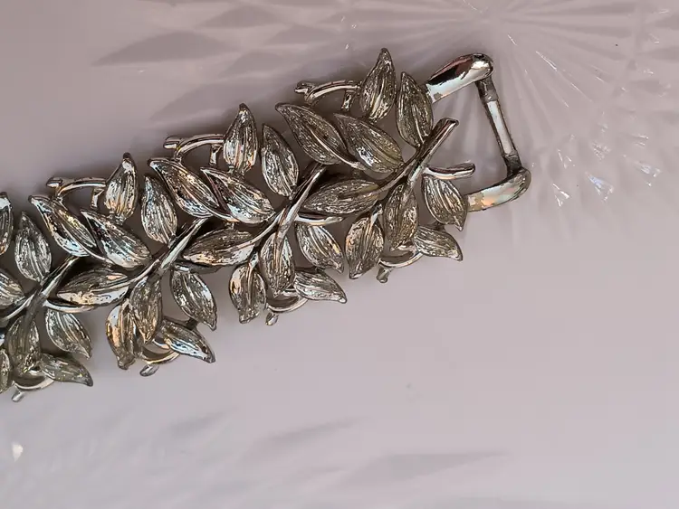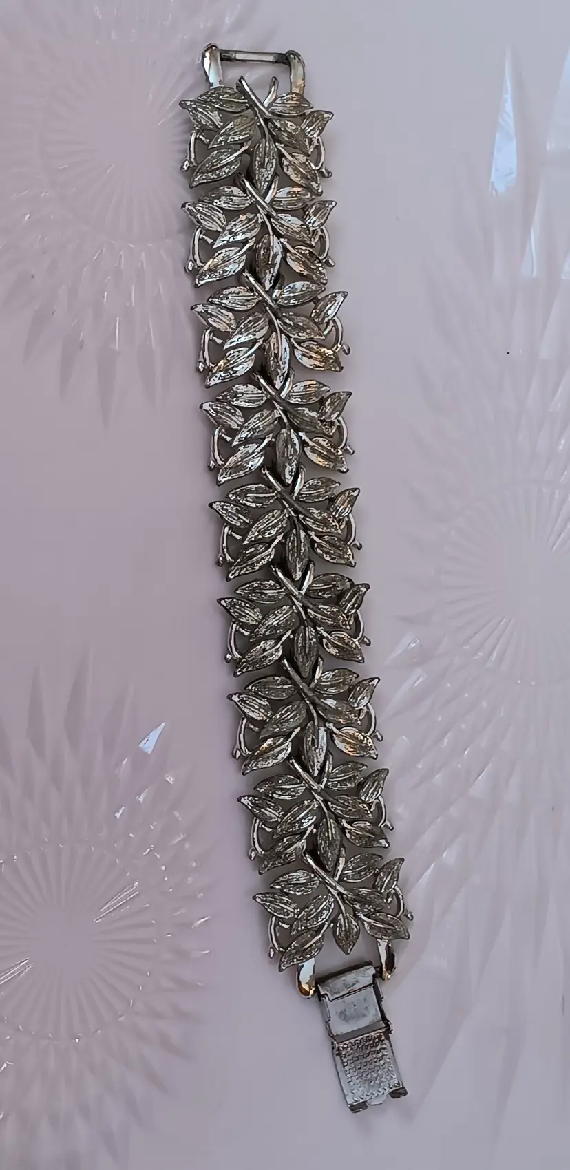 Vintage Coro Pegasus silver-tone leaf-link bracelet.