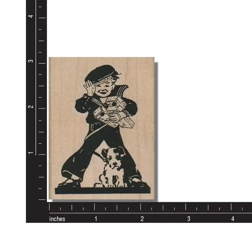 Vintage Cracker Jacks Kid With Dog Rubber Stamp Size:3 x 2-1/4 inches Wood Mounted Red Rubber Handmade