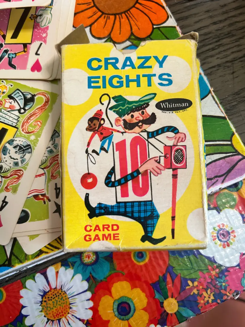 For sale! Vintage Crazy 8s Kitschy Whitman Card Game. Box sold as is. All cards there.
