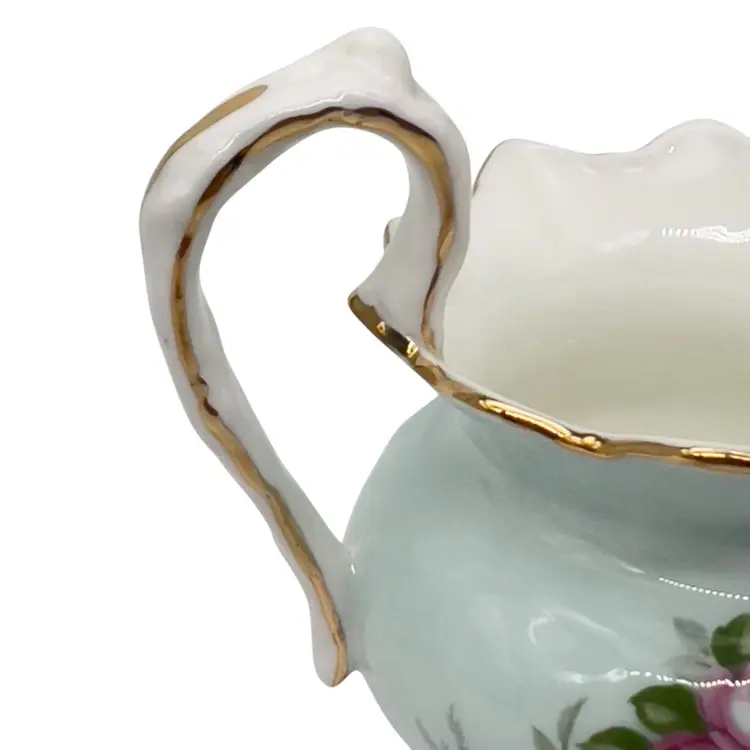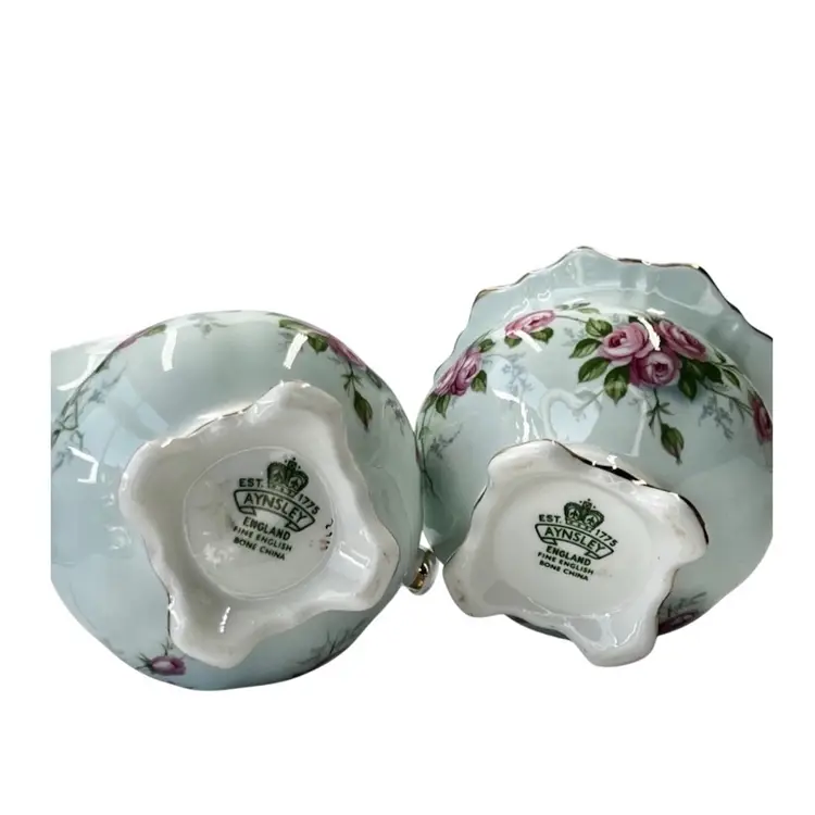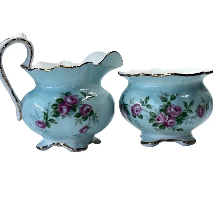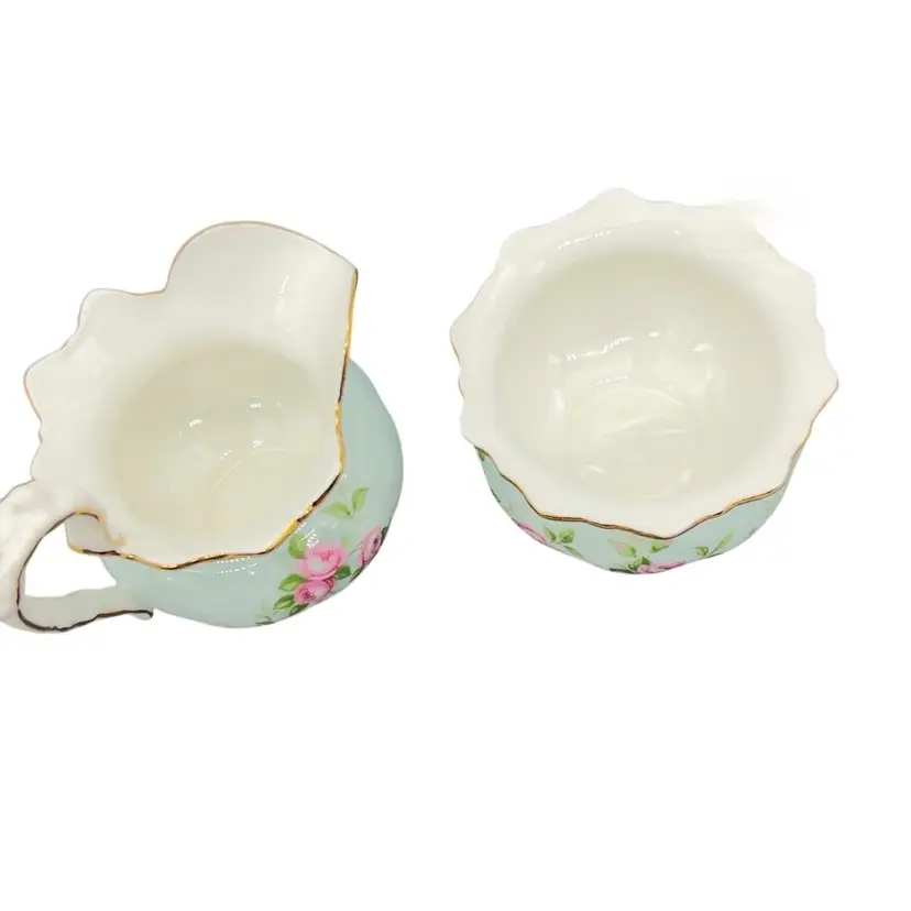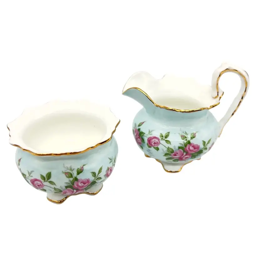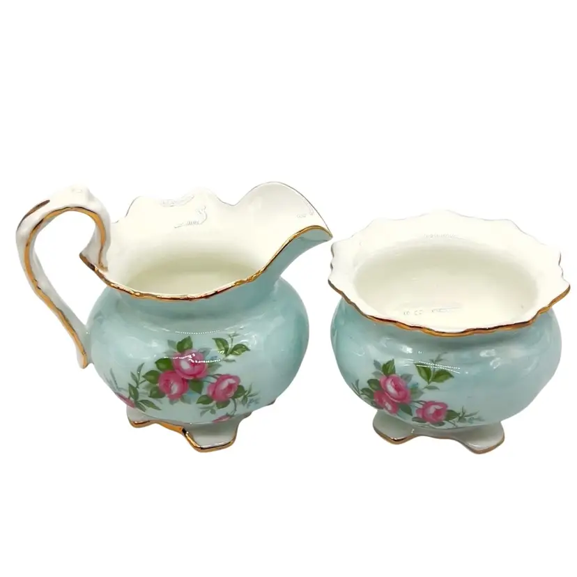 👉Creamer 3.75x4” Sugar 2.25x3.12 👉Fine Bone China Grotto Rose Light Blue Pink 👉Green Stamped Hallmark Collectible 👉No Chips or Cracks 👉Review Photos for Best Condition Description 👉Sold as Shown *FUN FACT: In Some Versions A s in This One from this Period the Green Hallmark features a crown, a detail that was allowed after receiving a Royal Warrant from Queen Victoria.