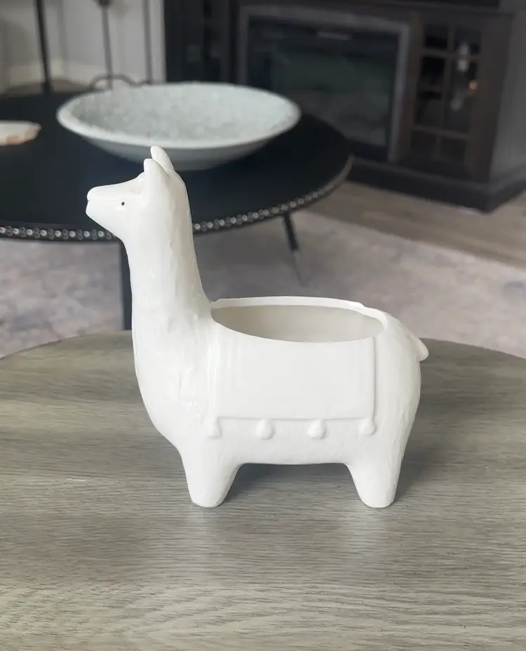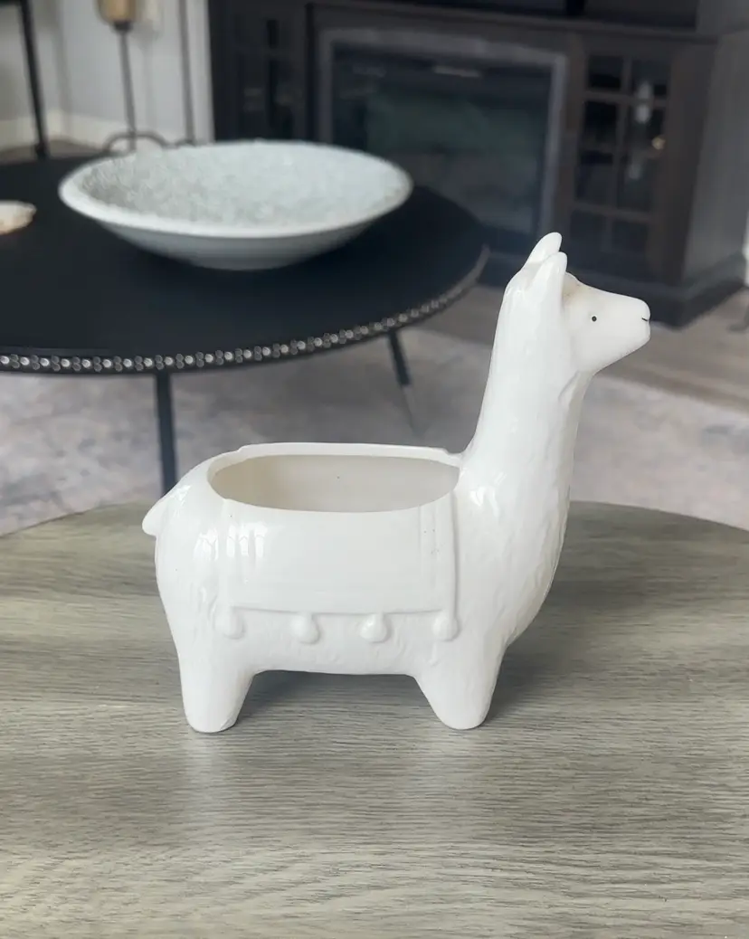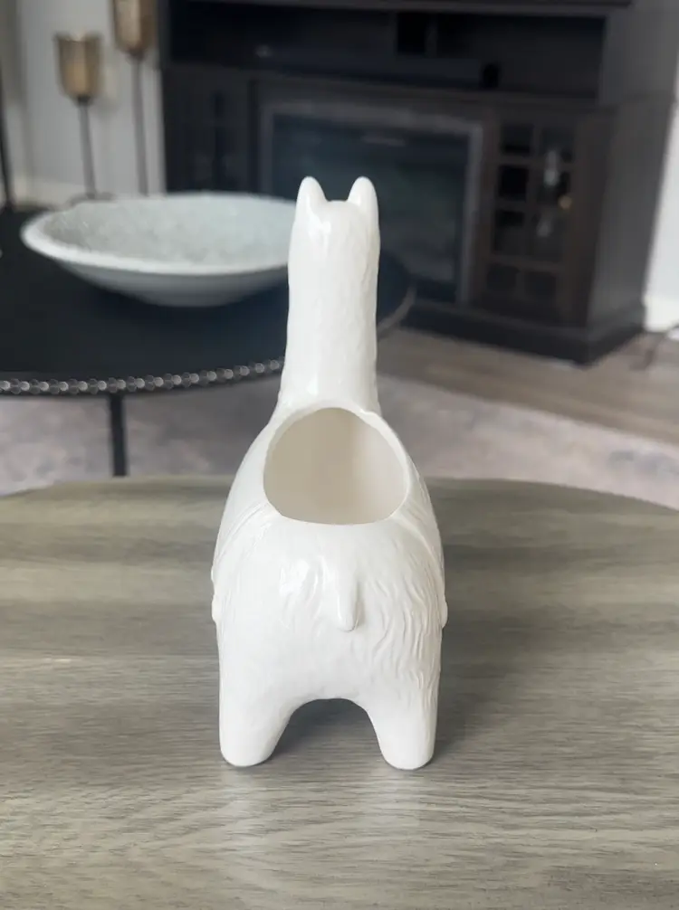 The Vintage Creative Co-op Set of 2 Ceramic Llama Flower Planters is a charming addition to any home decor. Made of ceramic, these small planters feature a whimsical llama design, perfect for adding a fun touch to any room. With an indoor focus and originating from the 21st century, these decorative collectibles are versatile for all occasions and any room in the house. Originally $18.99 each! 6”L x 7”H x 3”W.