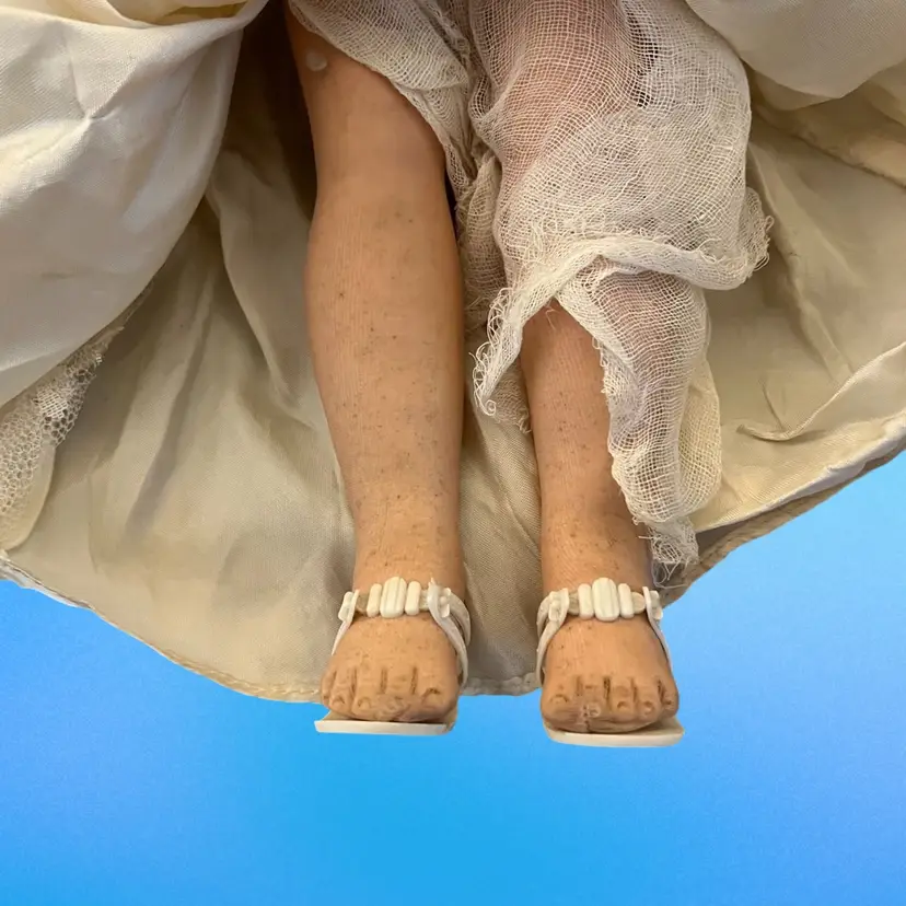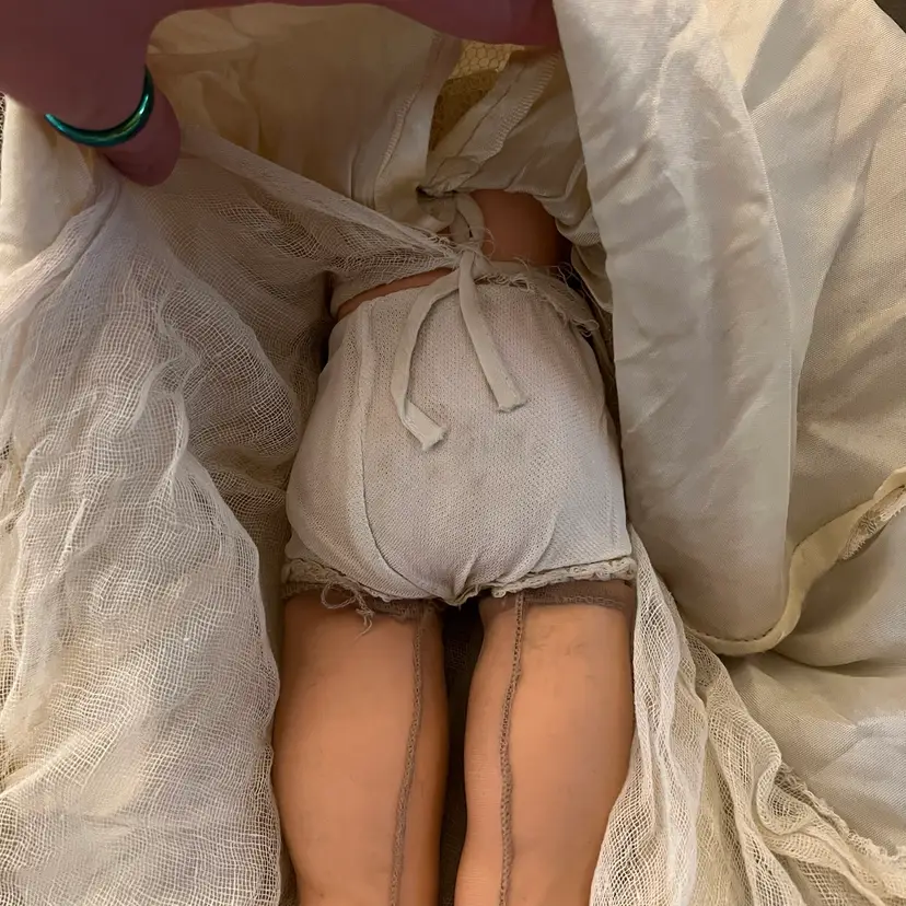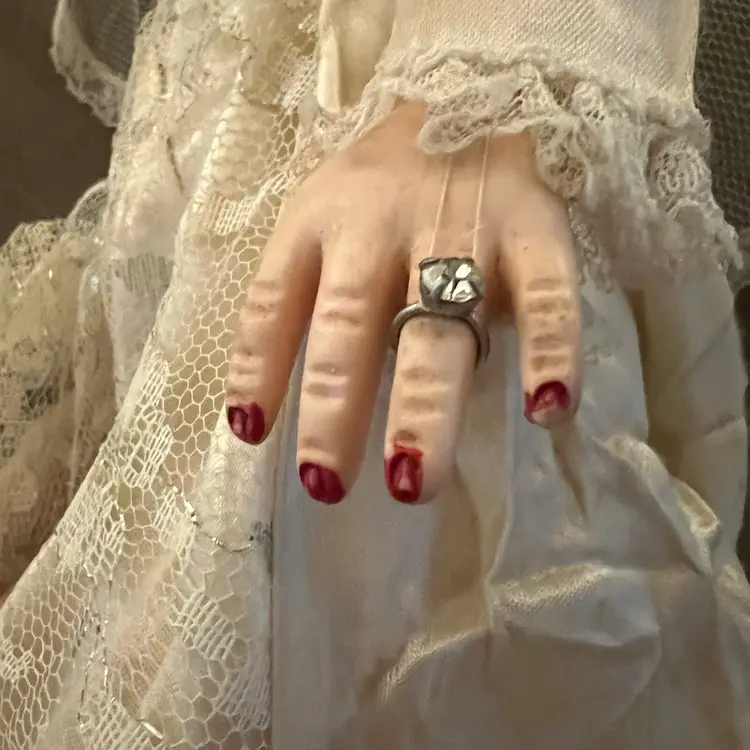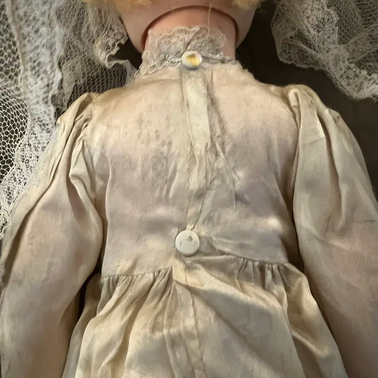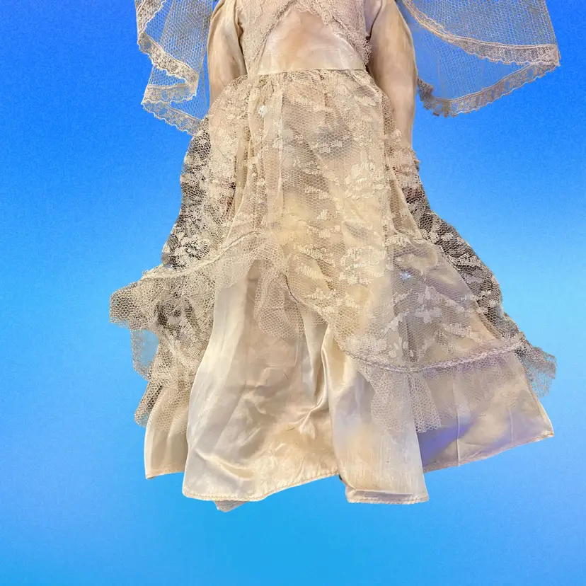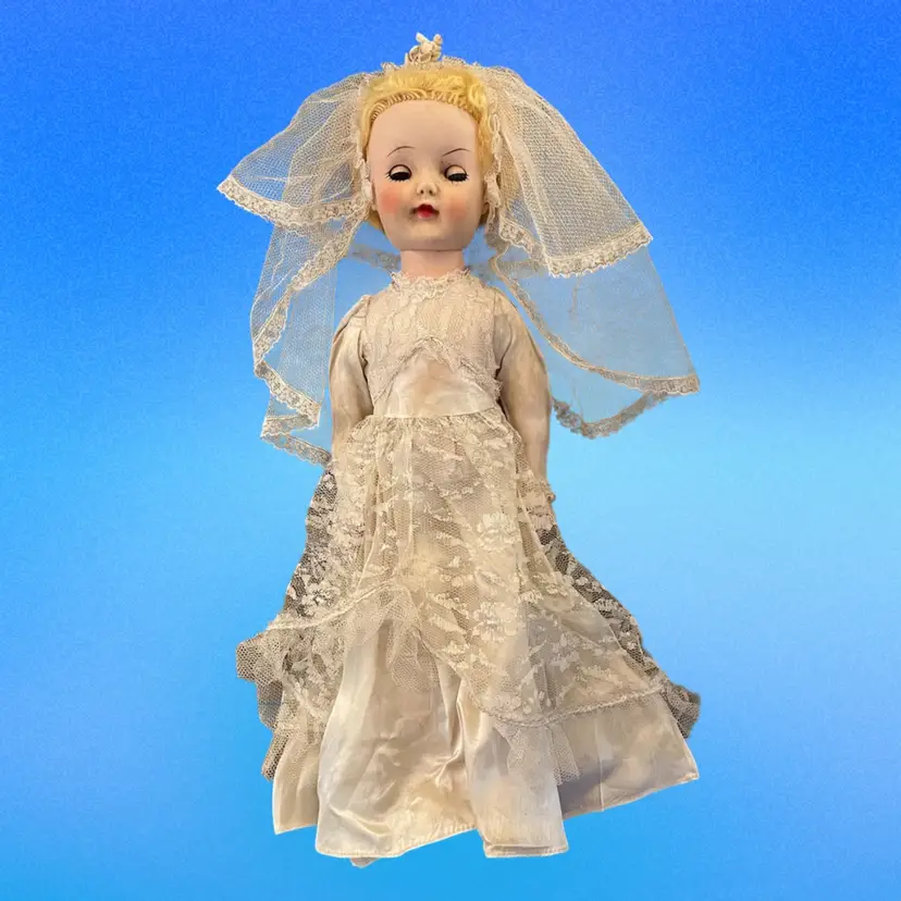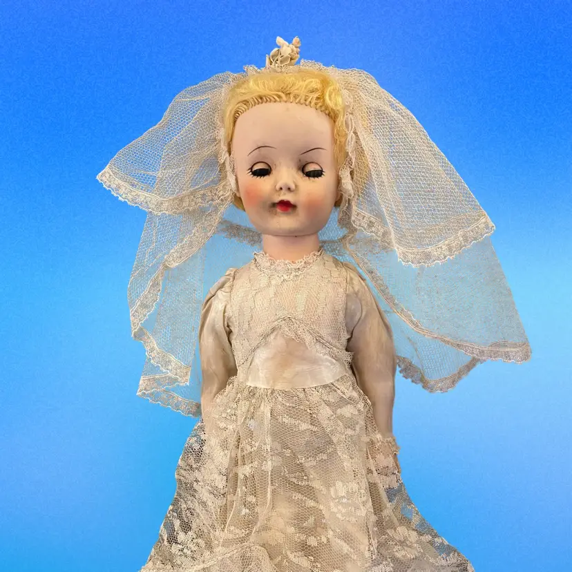 Vintage Creepy Bride Doll w Stockings Veil Shoes Ring 1950s Era 20โ€ Doll Ready for Halloween (KK)