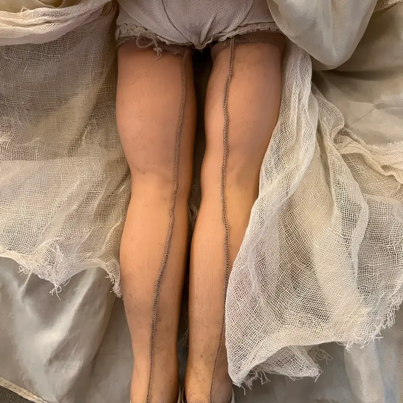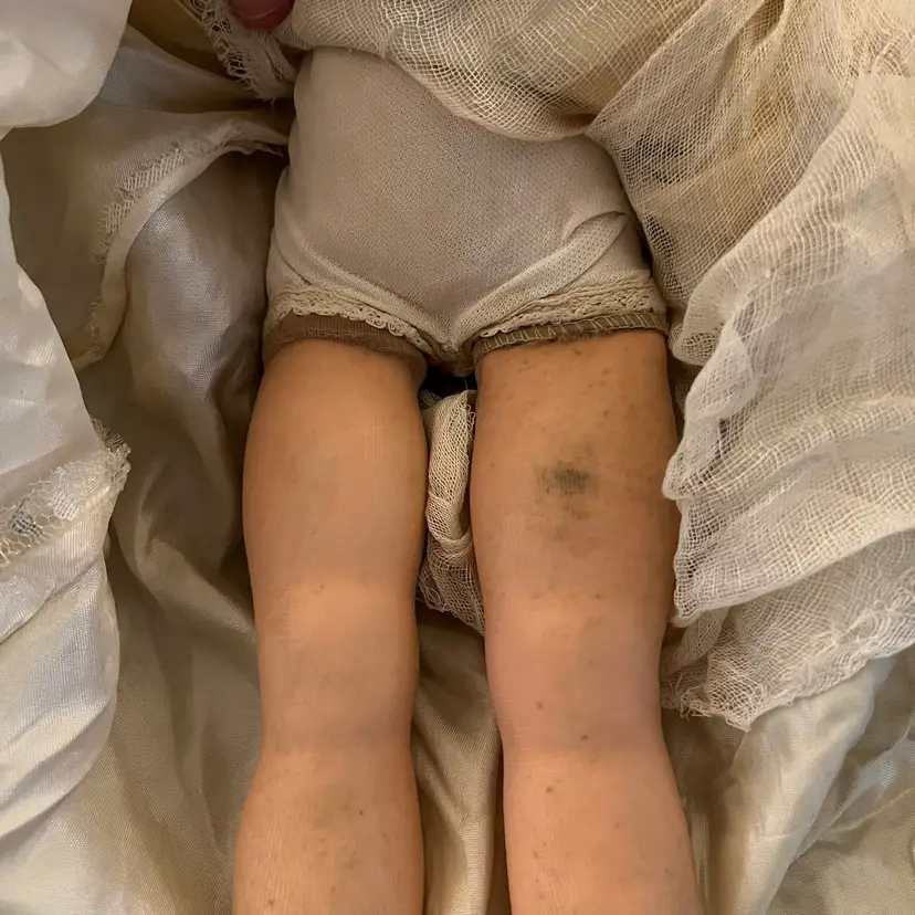 She has some staining on her thigh -- could it be mildew? I don't know. She creeps me out too much to get that close to her, or to spend that much time in her nether region. And I don't scare easily. Just sayin.