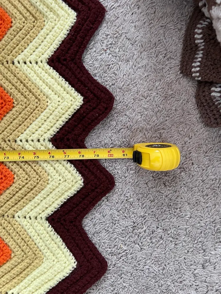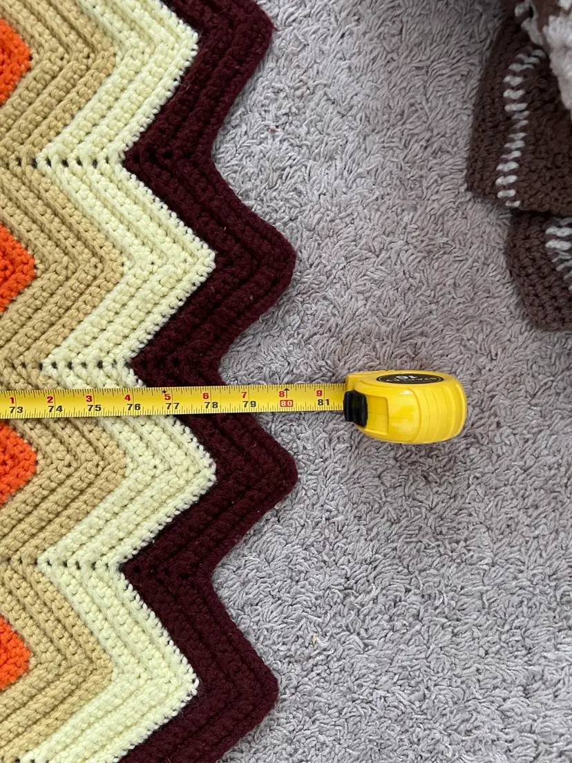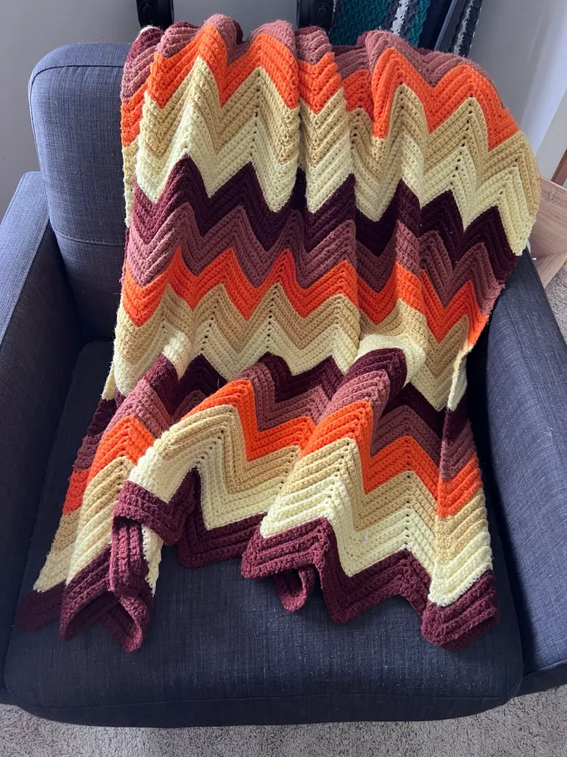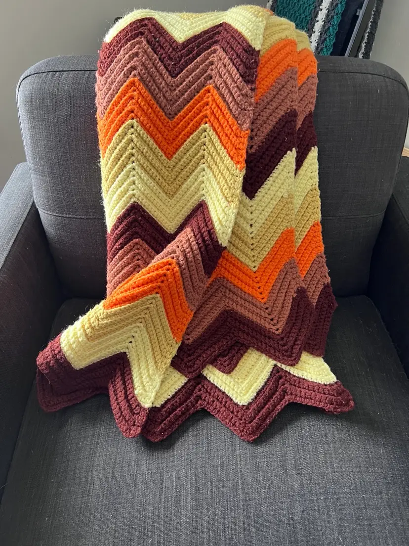 Vintage Crochet Chevron Afghan Orange Brown Yellow Tan