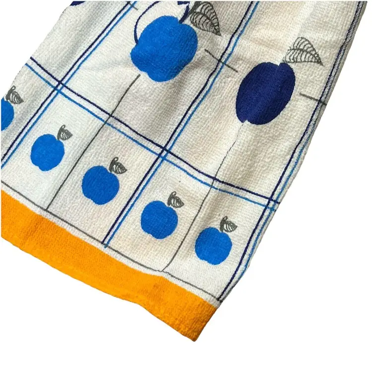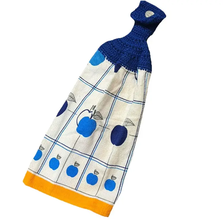 Vintage Crochet Top Hanging Hand Kitchen Towels Blue Apples Orange Retro 70s NEW