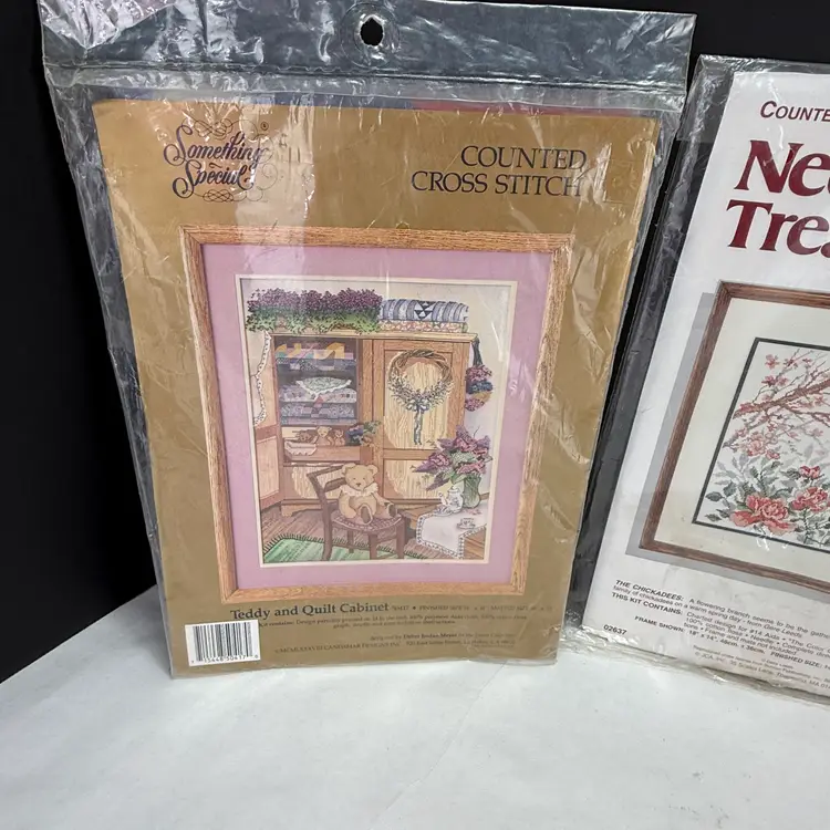 Simplicity Stitchery Cross Stitch Jordan At The Wedding Something Special Counted Cross Stitch Teddy and Quilt Cabinet Needle Treasures Counted Cross Stitch The Chickadees Dimensions Butterfly Duo DMC Needlework Fabric MCG Textiles Oatmeal Cross Stitch Fabric